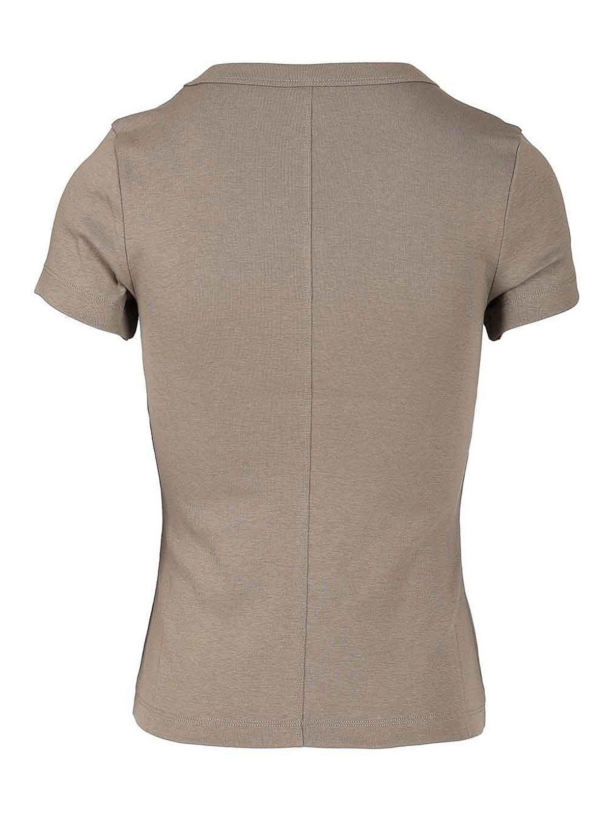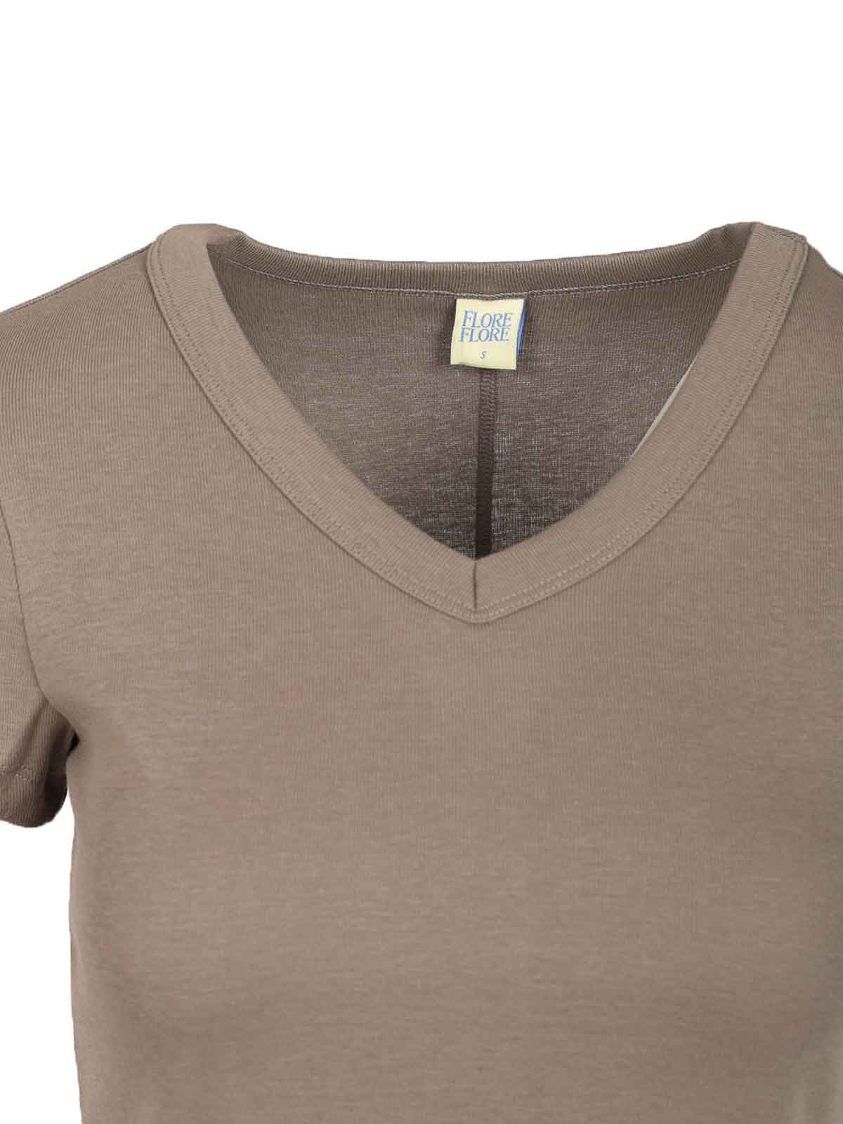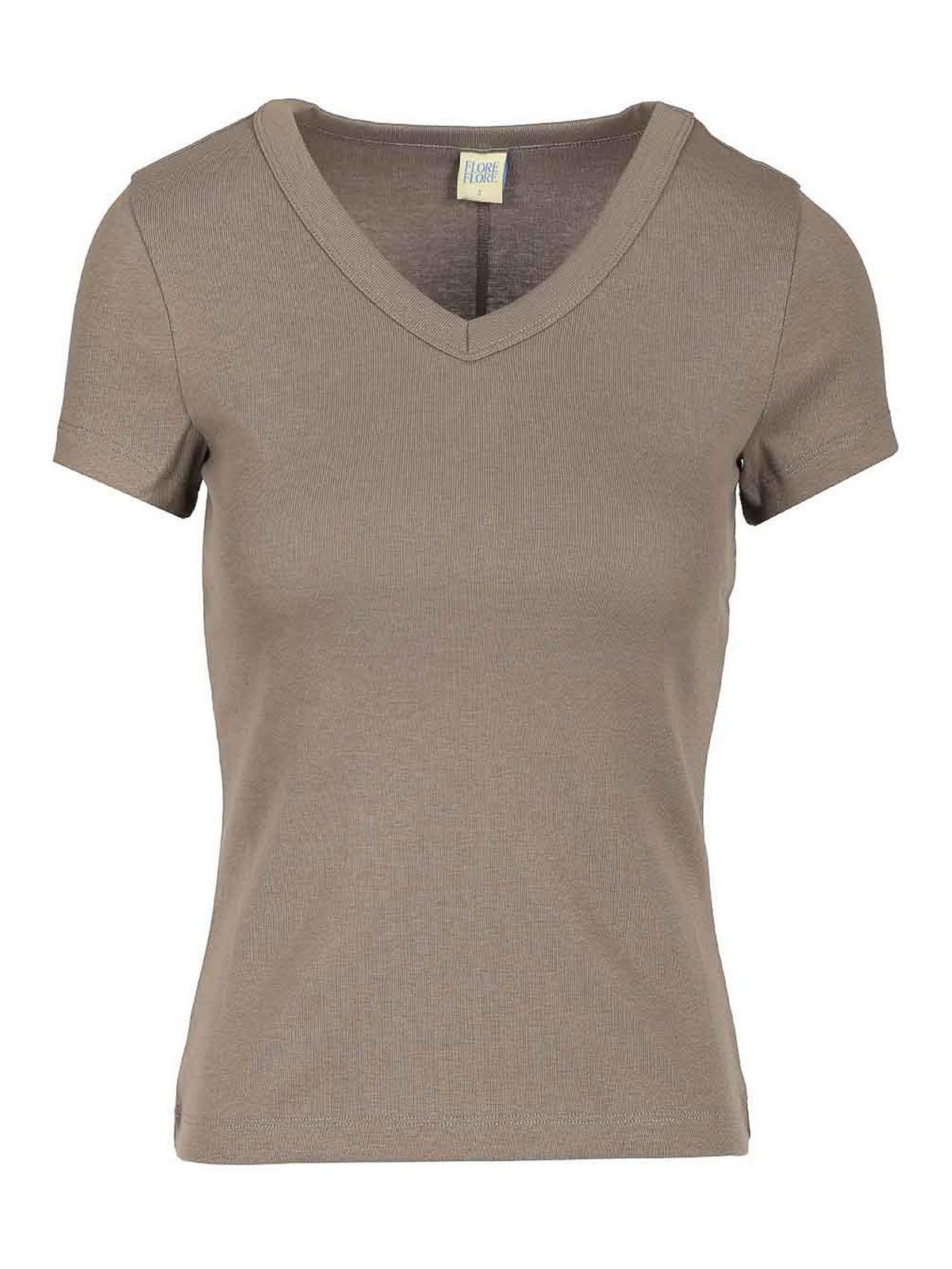 Flore floreのジルベイビーリブTシャツは、Vネック、カットアウトバックの縫い目が特徴のショートスリーブ
