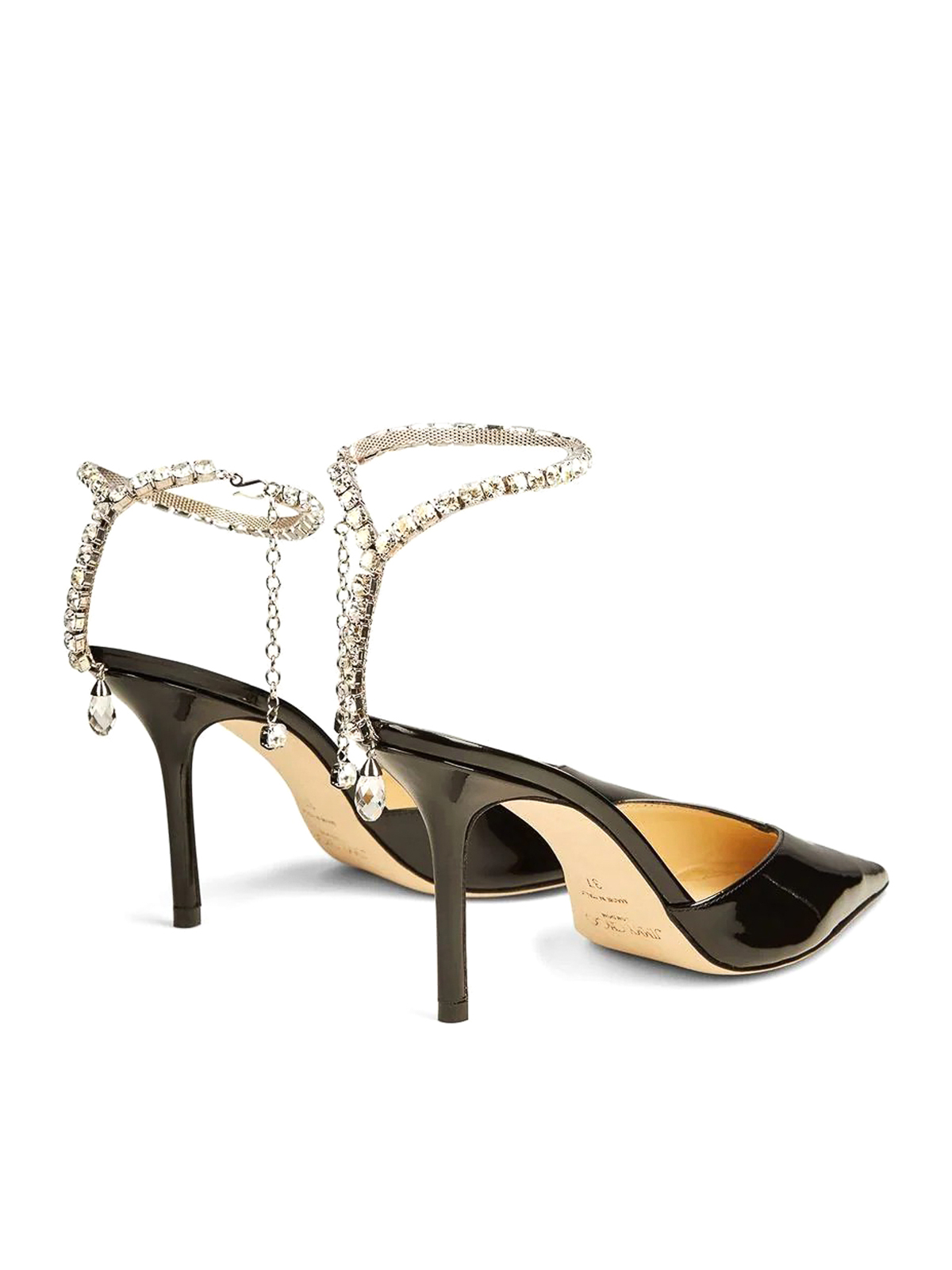 パテントレザークリスタルチェーンデコレーションポインテッドトゥデザイン 3mm/3 薄型ヒール 3