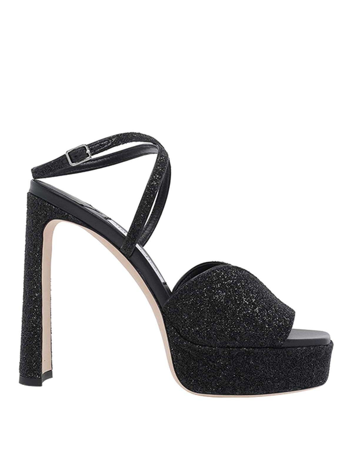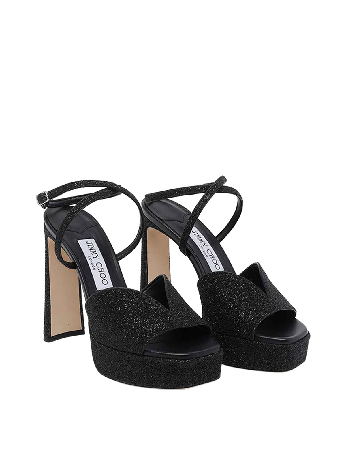 ジミーチュウブラックカーリパンプス、グリッターディテール、オープンスクエアトウ、バックルクロージャー、EUサイズ