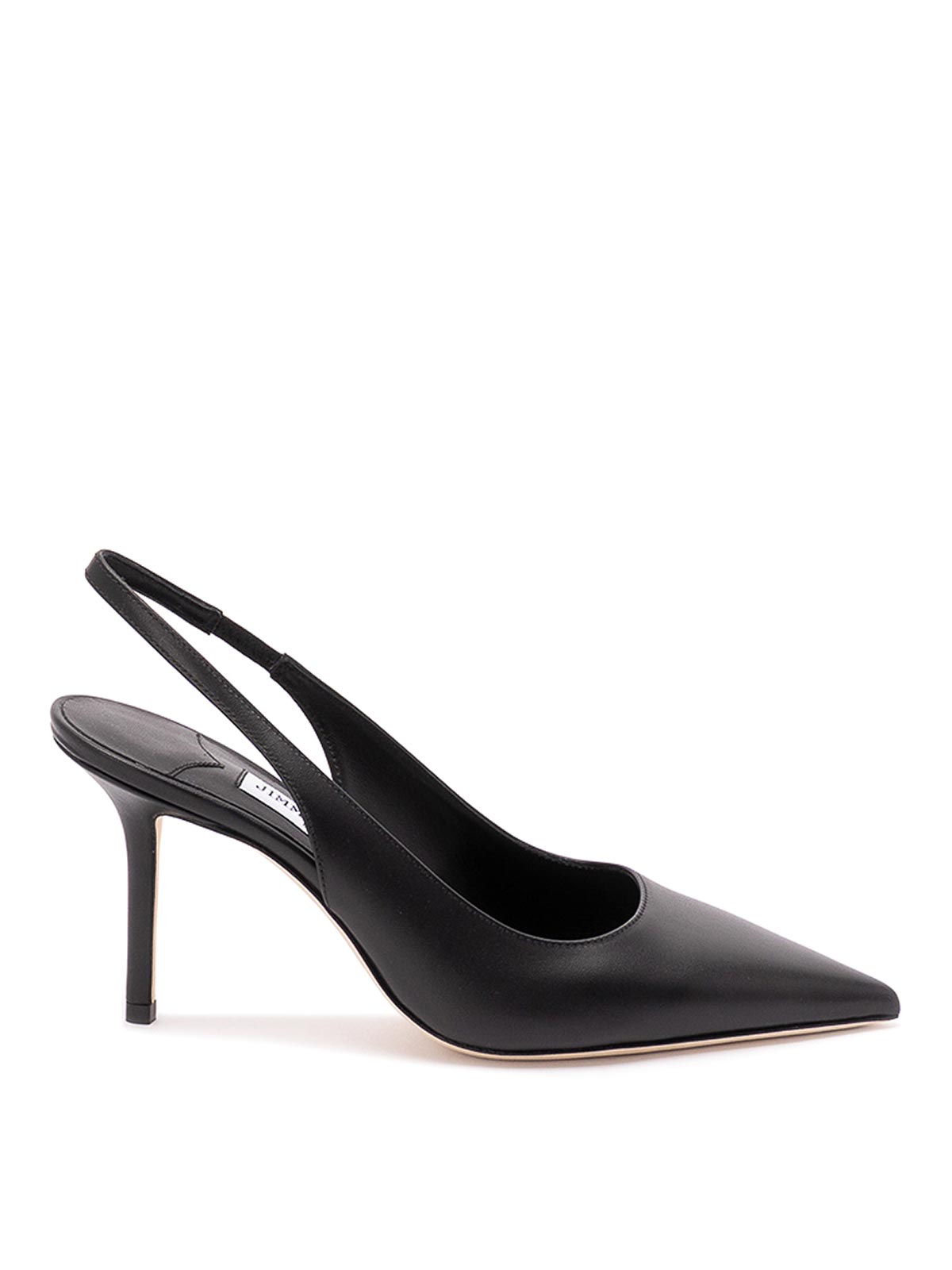ミディアムヒール、シャープトウ、エレガントなラインのクラシックなパンプス。