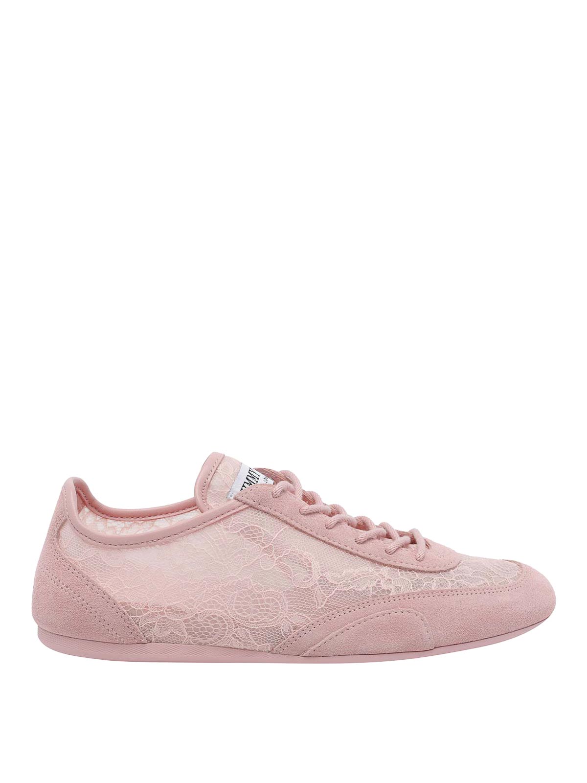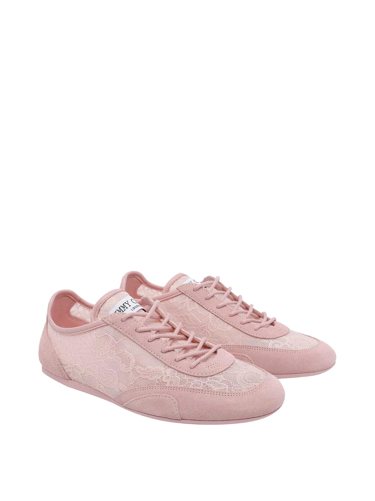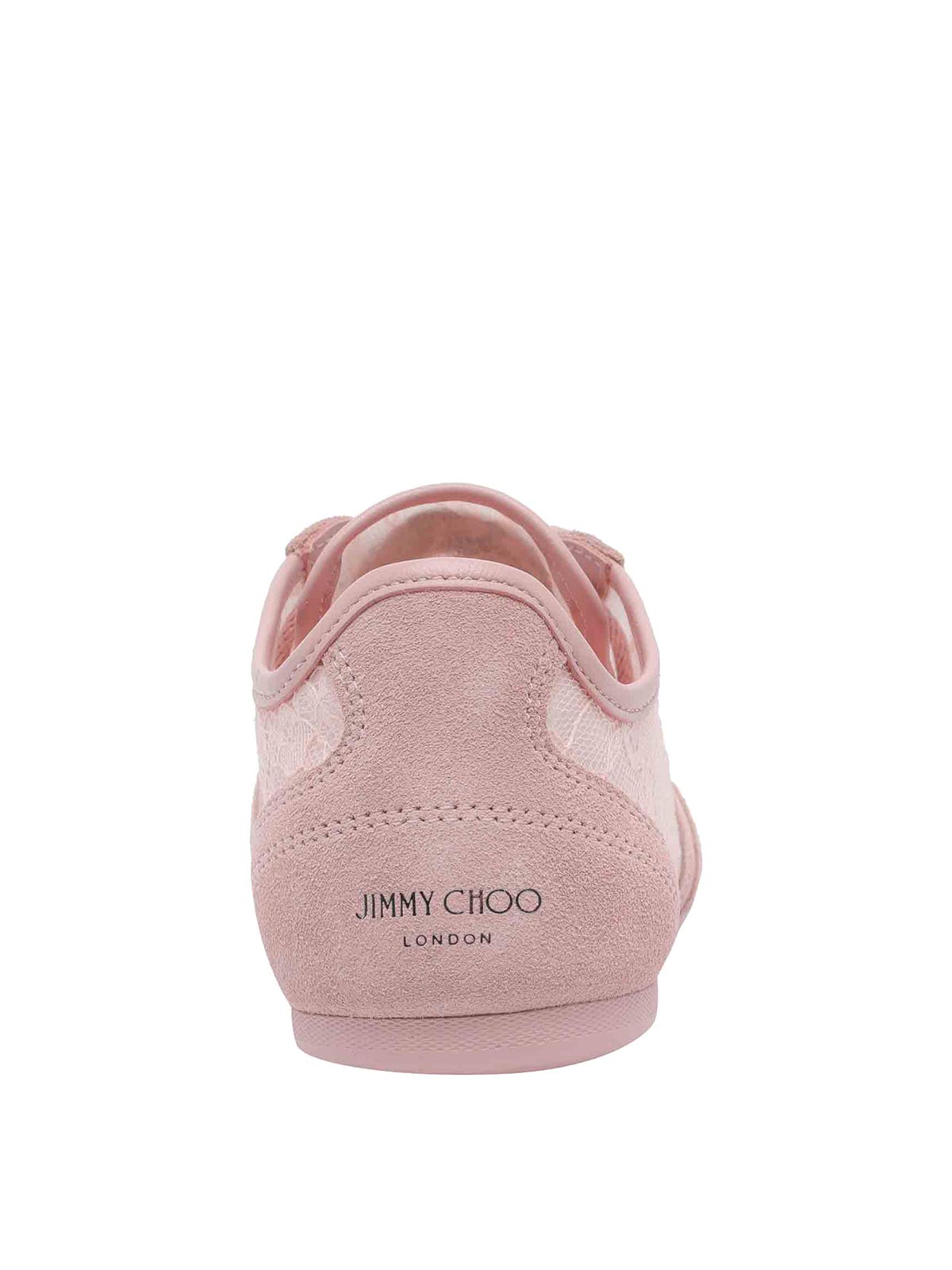 ジミーチュウピンクサニースニーカー、レースクロージャー、レース、ラウンドトウ、レースクロージャー、透明ディテール