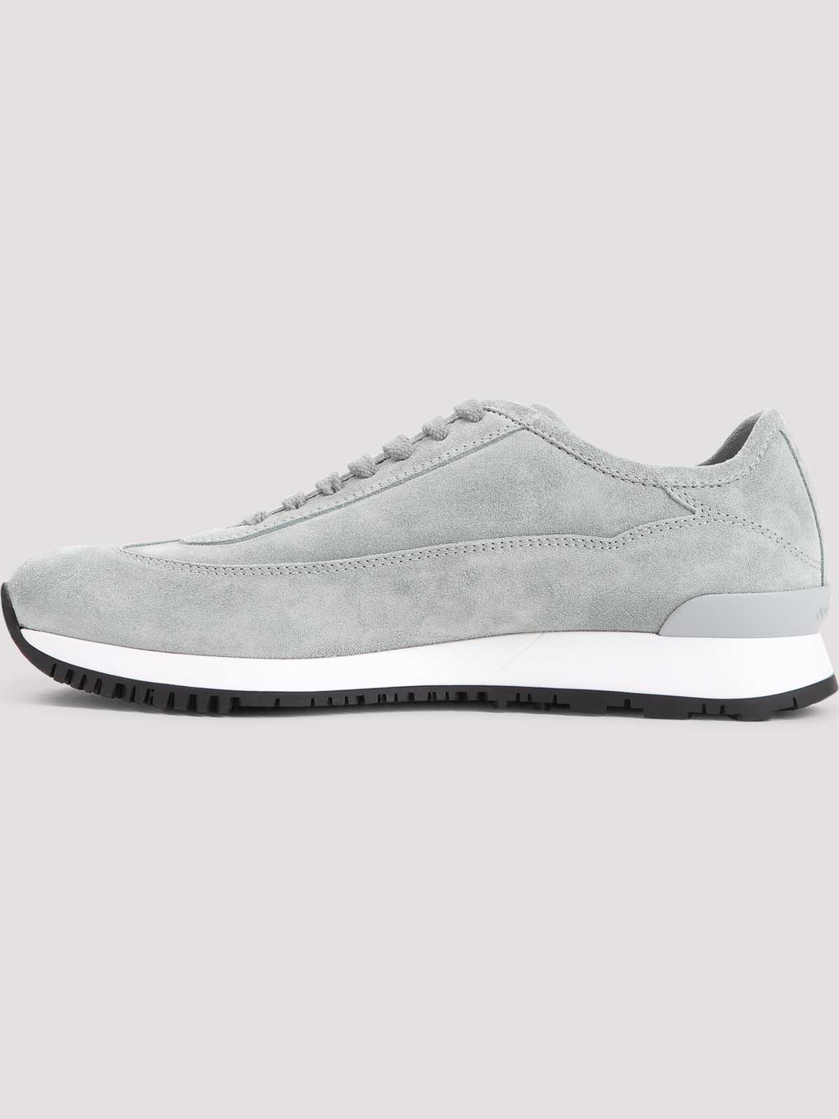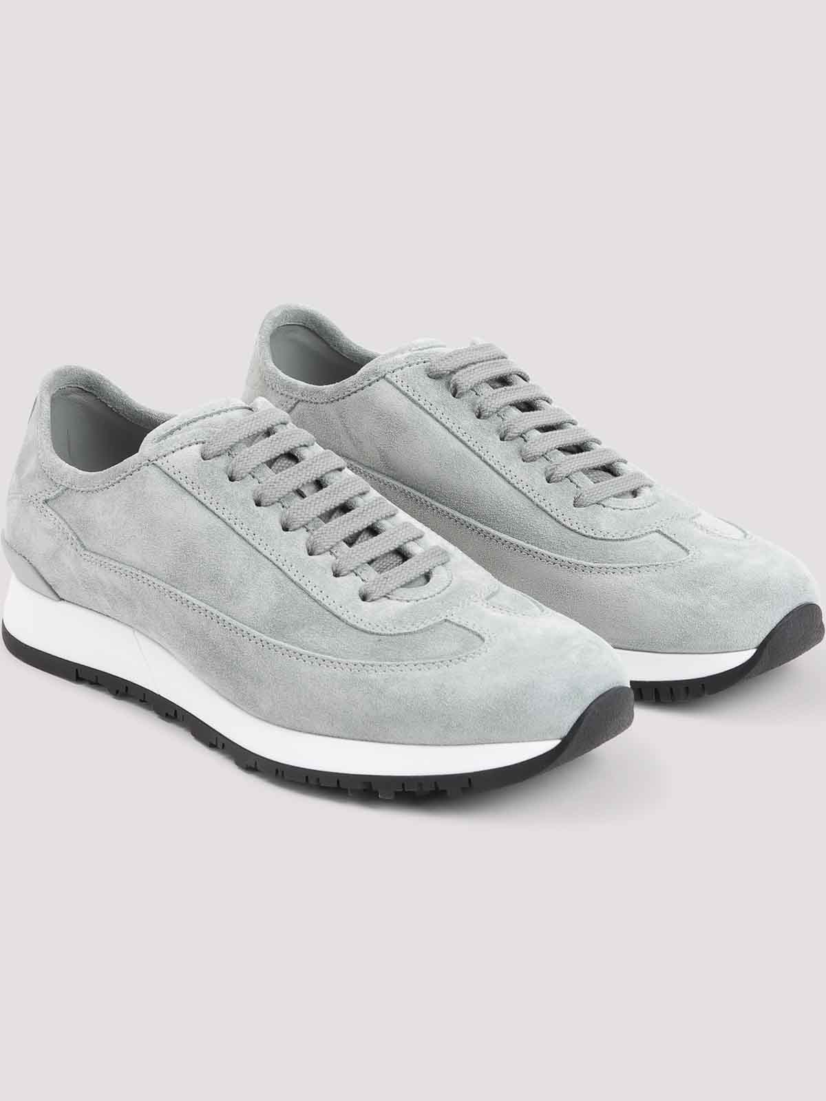John lobb アイスブルースエードレザーファウンドリー II スエードローファー。ピュアアイスブルースエードレザーローファー、ラウンドトウ、トップレースアップファスナー、同系色ステッチ、ホワイトとブラックソール。