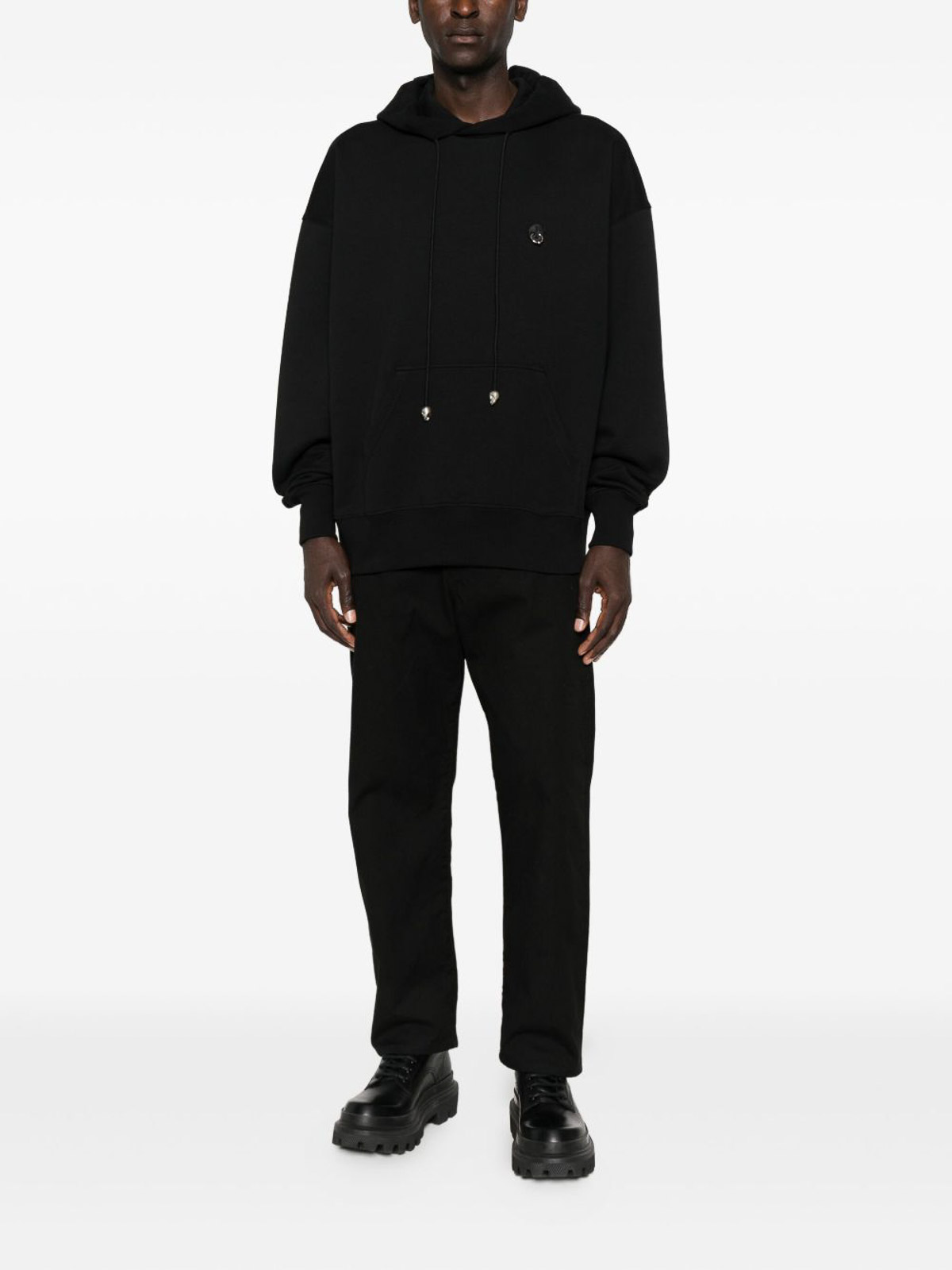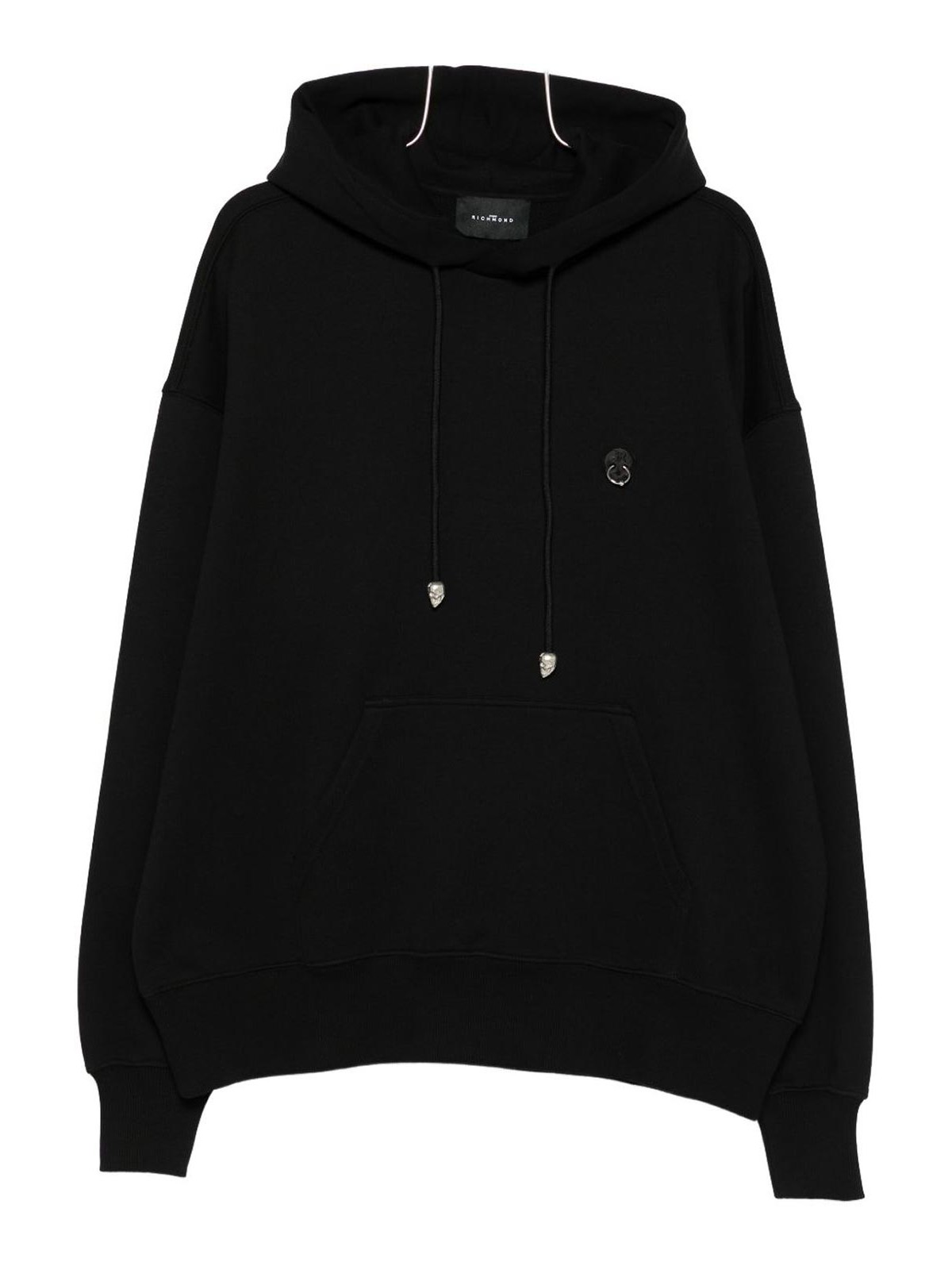 ブラックドローストリングフードスカル型カンガルーポケットスカルロングスリーブ