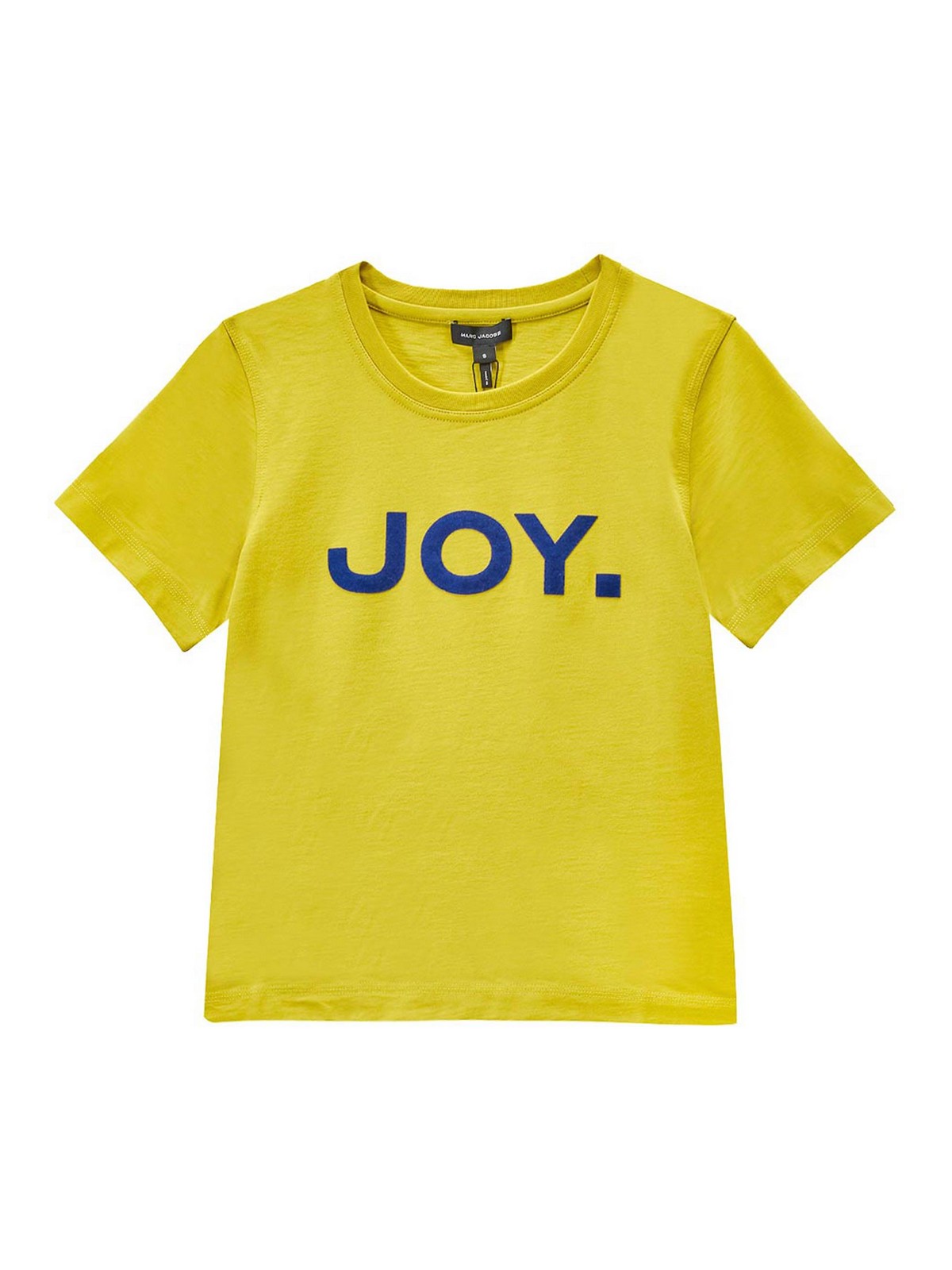 Joy Slim T シャツ、イエロー。対照的なジョイプリントをあしらったマーク・ジェイコブスのクロップドコットンTシャツ。クルーネック、ショートフィット、前面にコントラストの効いたプリント、背面にスクリーンプリント。カラー:イエロー。100% コットン、スリムフィット、ポルトガル製。