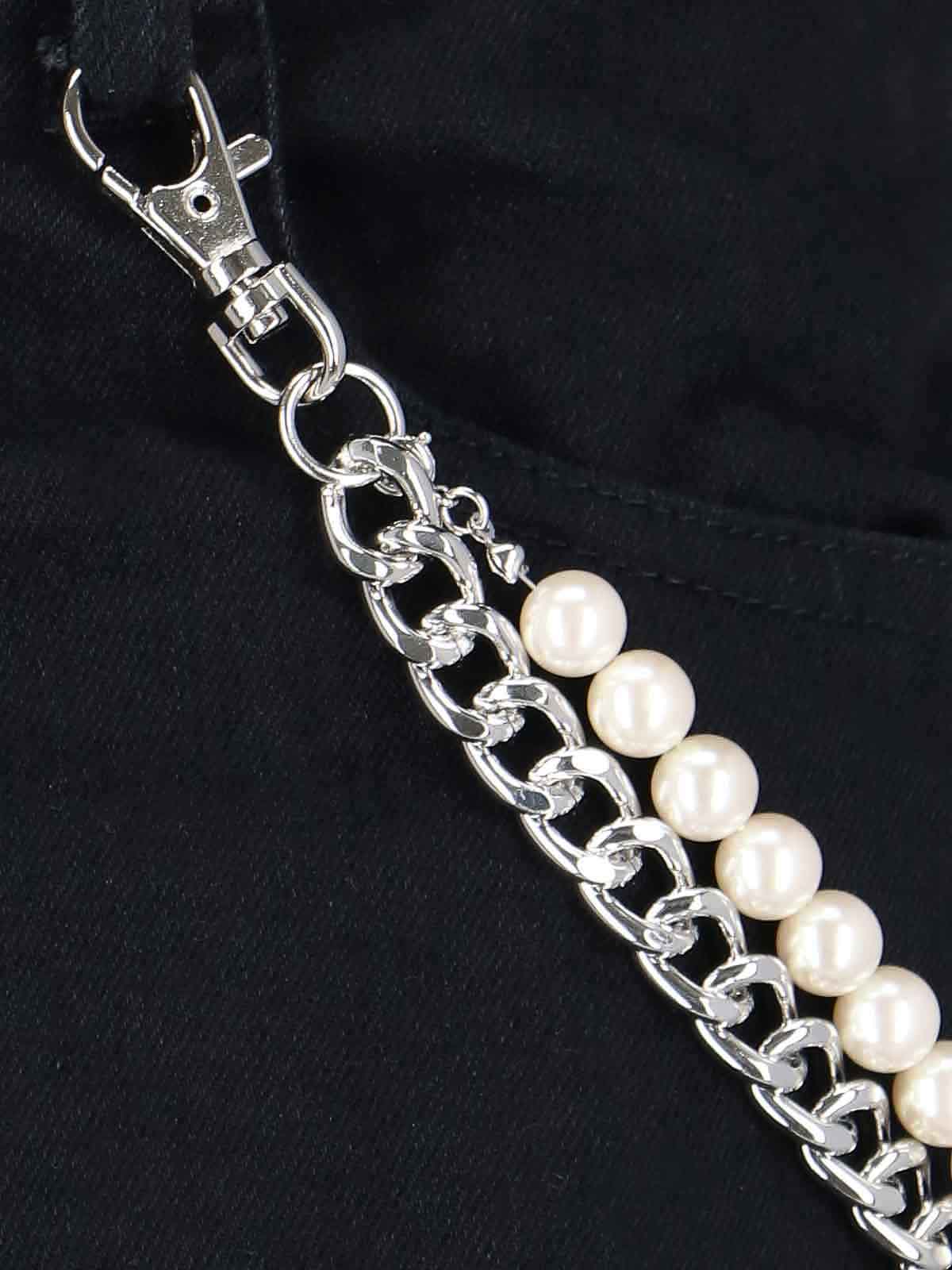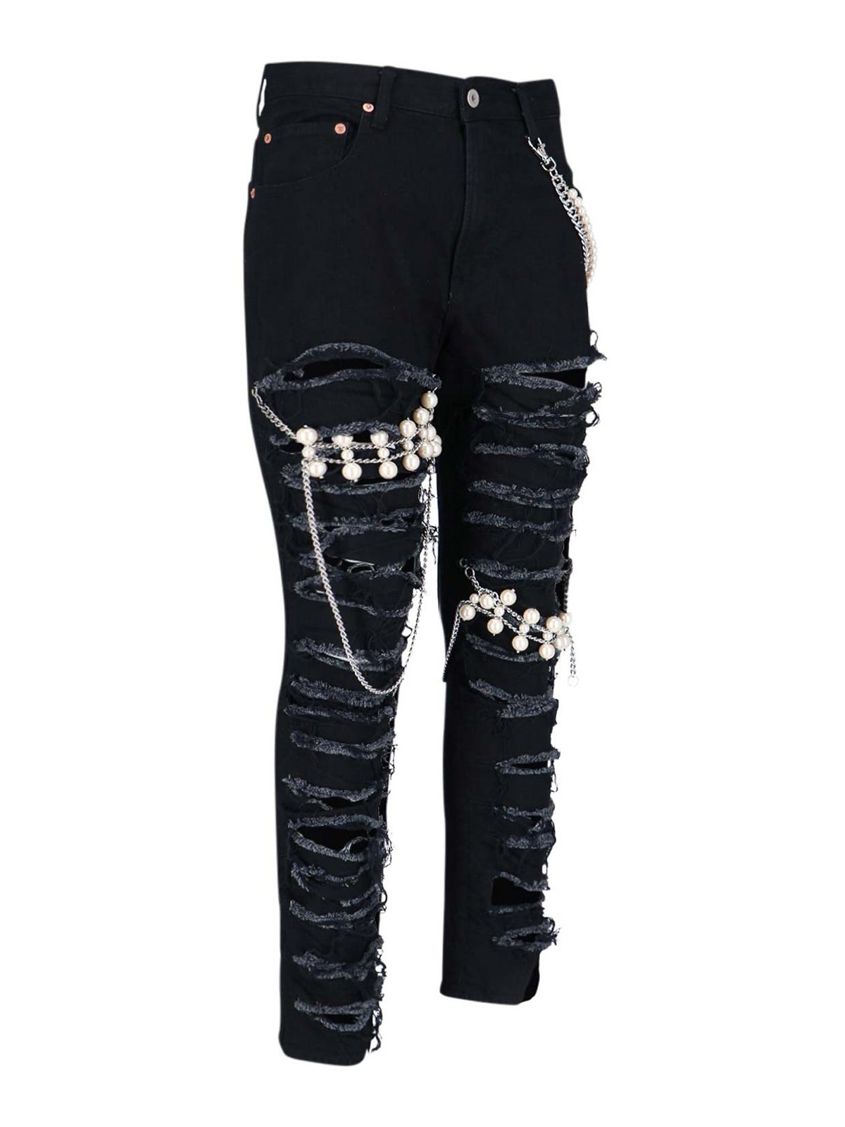 スリムデストロイジーンズブラックスリムデストロイジーンズベルトループファスナーとボタン5ポケットデザインチェーンとパールストレートヘム