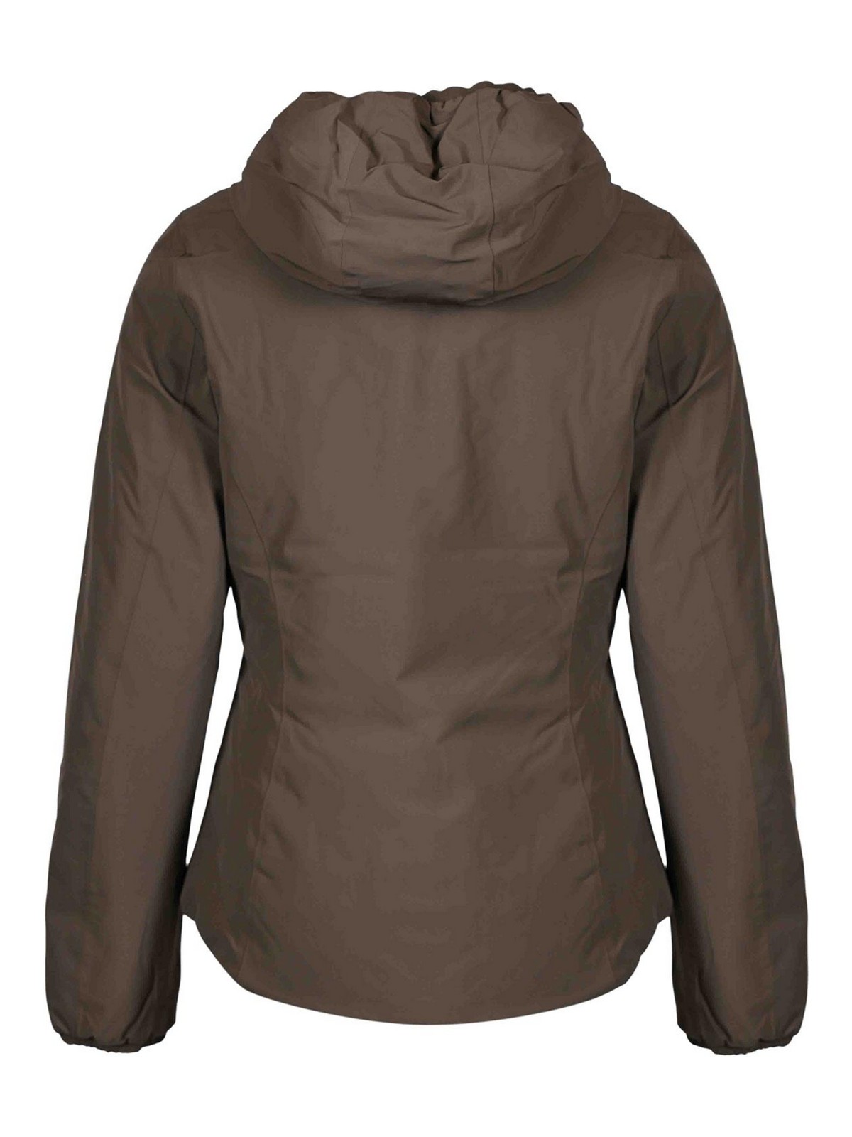 テクニカルロングスリーブ調節可能なフードダブルスライダージッパーリバーシブルポケット左胸にロゴ入りパッド入りスリムフィット