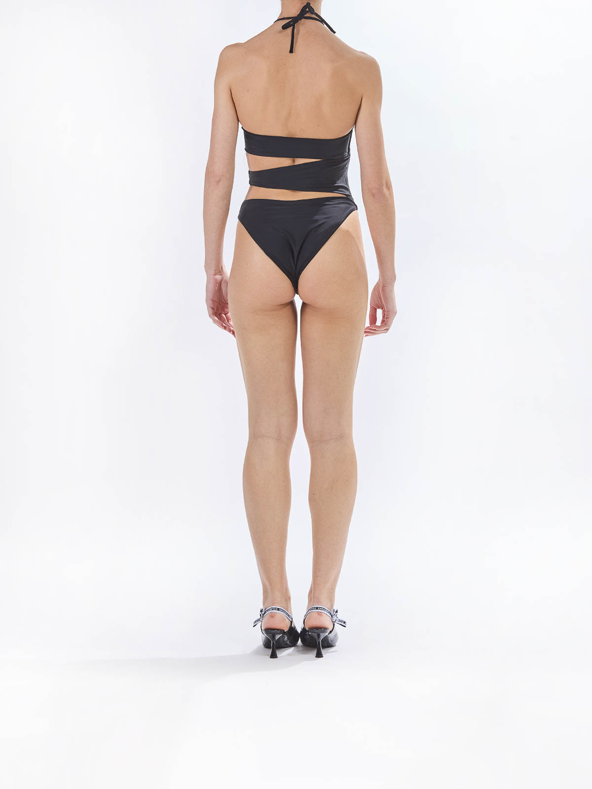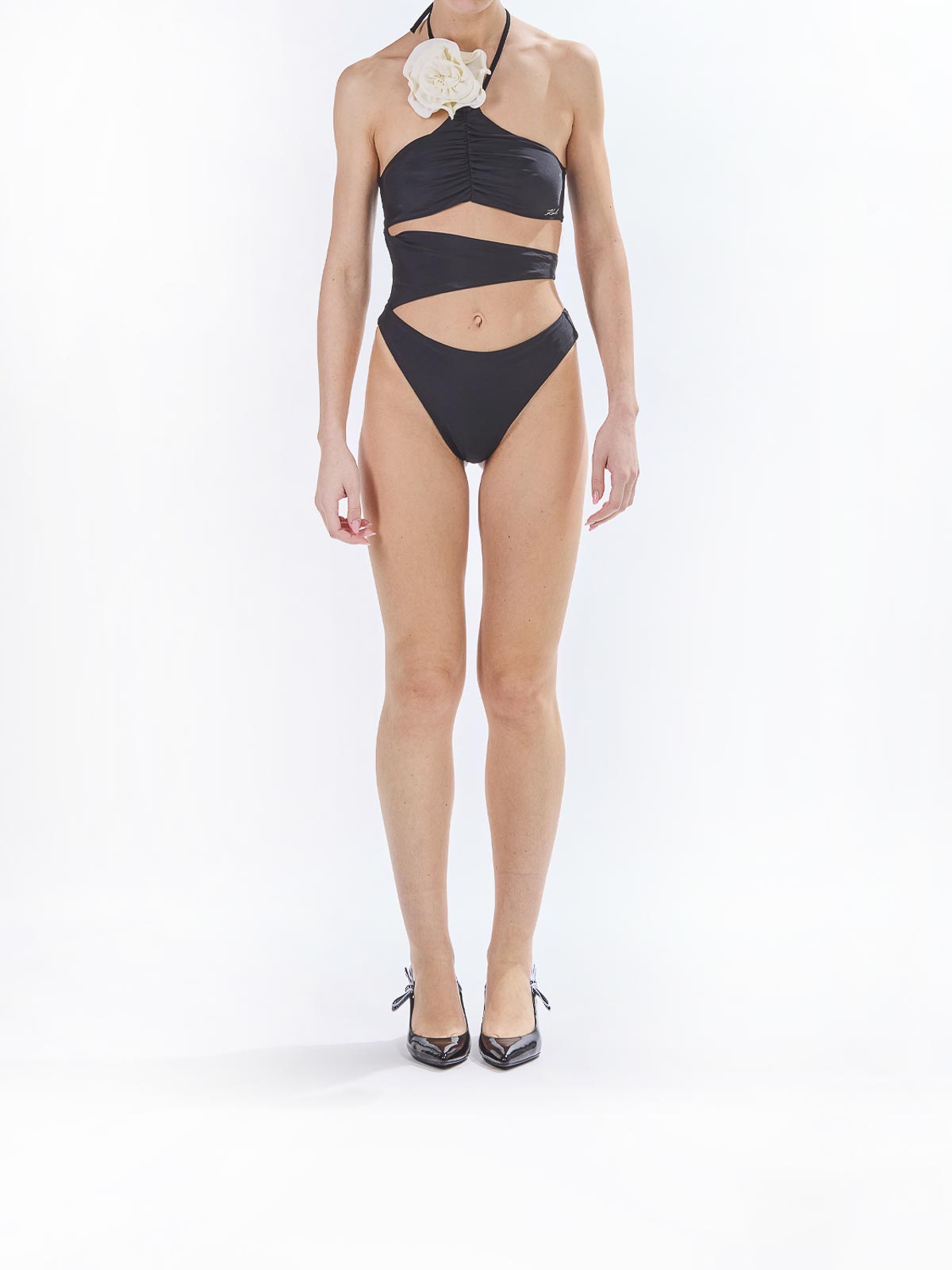 カールラガーフェルドのブラックバスルームコスチュームのカールDNAフラワースイムスーツは、カットされたハイレグシルアウトが特徴で、シングルコスチュームには取り外し可能な花柄の装飾が施された洗練されたアメリカンネックラインが特徴で、ハイスキンコスチュームには取り外し可能な花柄の装飾が施され、ブラックカラーのカールロゴは取り外し可能です