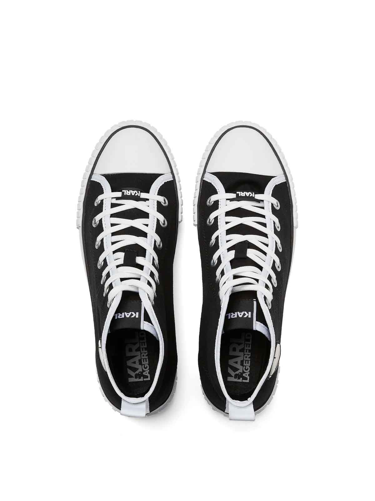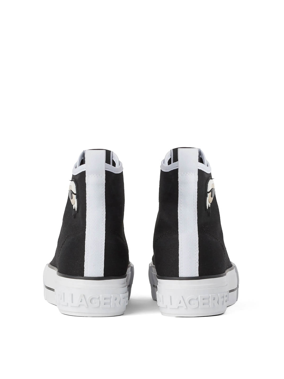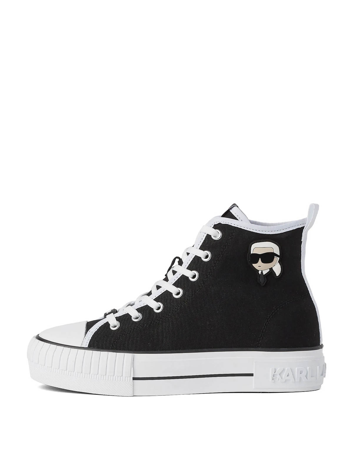 kampus max NFT パッチ hi ブラック、カールラガーフェルドコットンキャンバスのハイトップスニーカー。サイドにカールNFTパッチをあしらいました。つま先キャップにダブルテクスチャーコーティングを施したプラットフォームソールと、背面にトーン・オン・トーンのロゴがエンボス加工されています。ソールにカールラベルがエンボス加工されたトーン・オン・トーンのロゴが入ったレースアップハイカラーのカールNFTラバーパッチプラットフォームソールトングカラー:ブラック 100% コットンソール:100%ゴム、