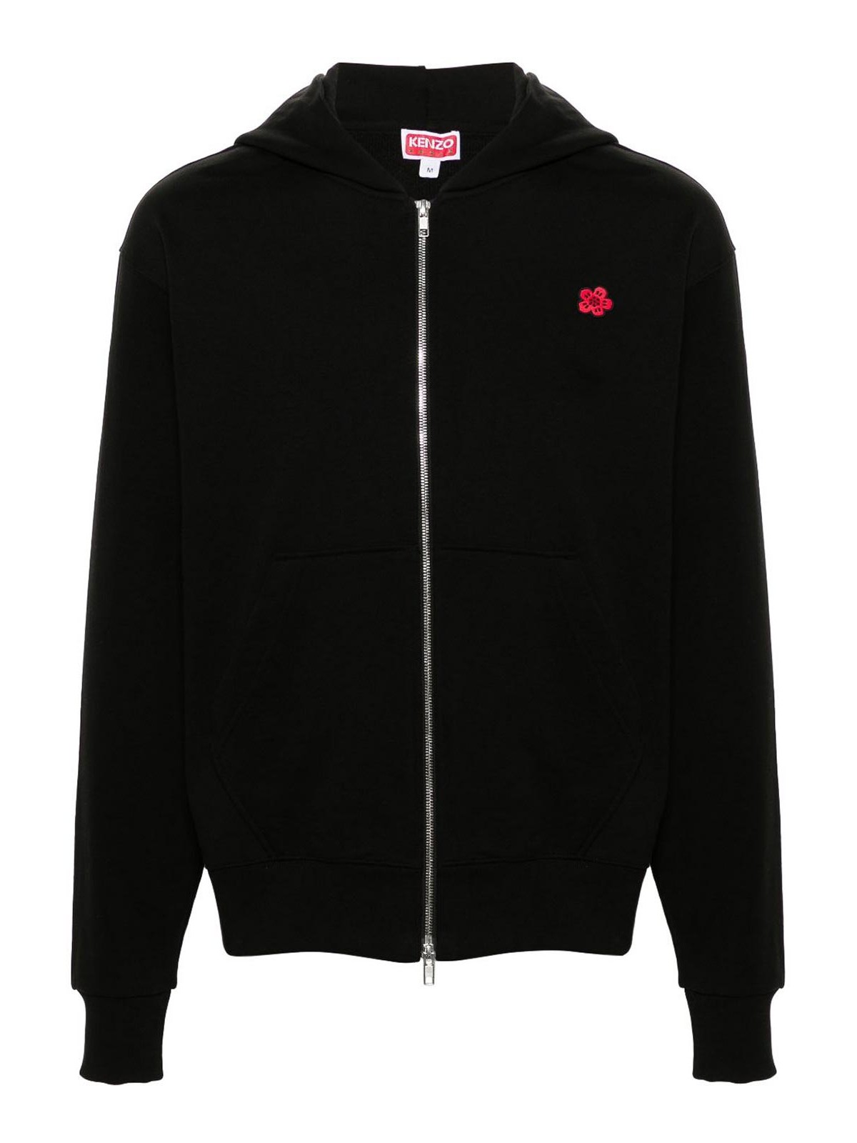 Kenzoのジッパーと花がプリントされた黒いスウェットシャツ