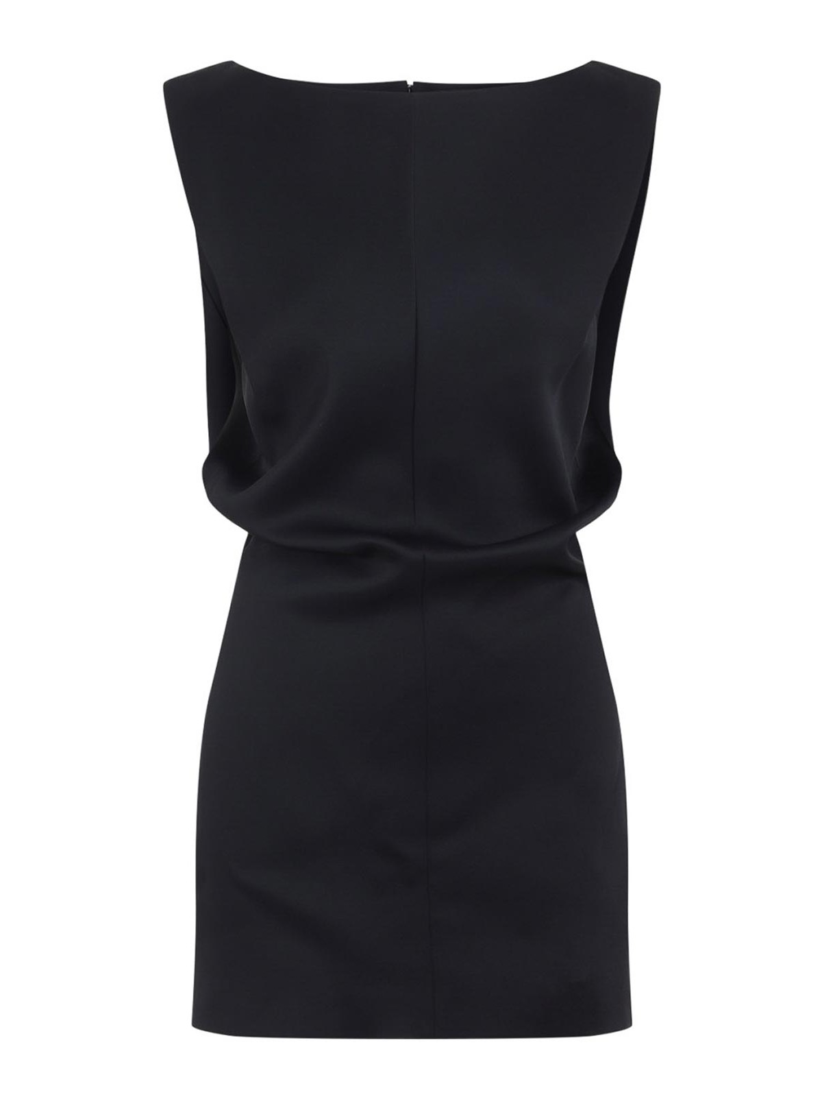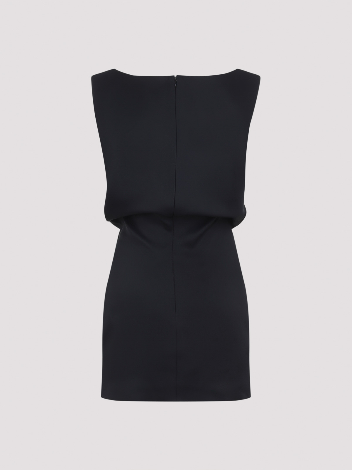 カーイトブラックのトマドレスは混紡ボートネックバックファスナー付きノースリーブパフウエストデザインミニ、レングスストレートヘム