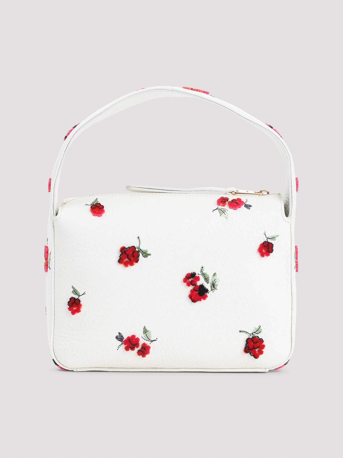 カイトラズベリークリームホワイトエレナスモールハンドバッグピュアクリームホワイトハンドバッグトップジップファスナー付きメインコンパートメントマルチカラーラズベリー刺繍デザイン