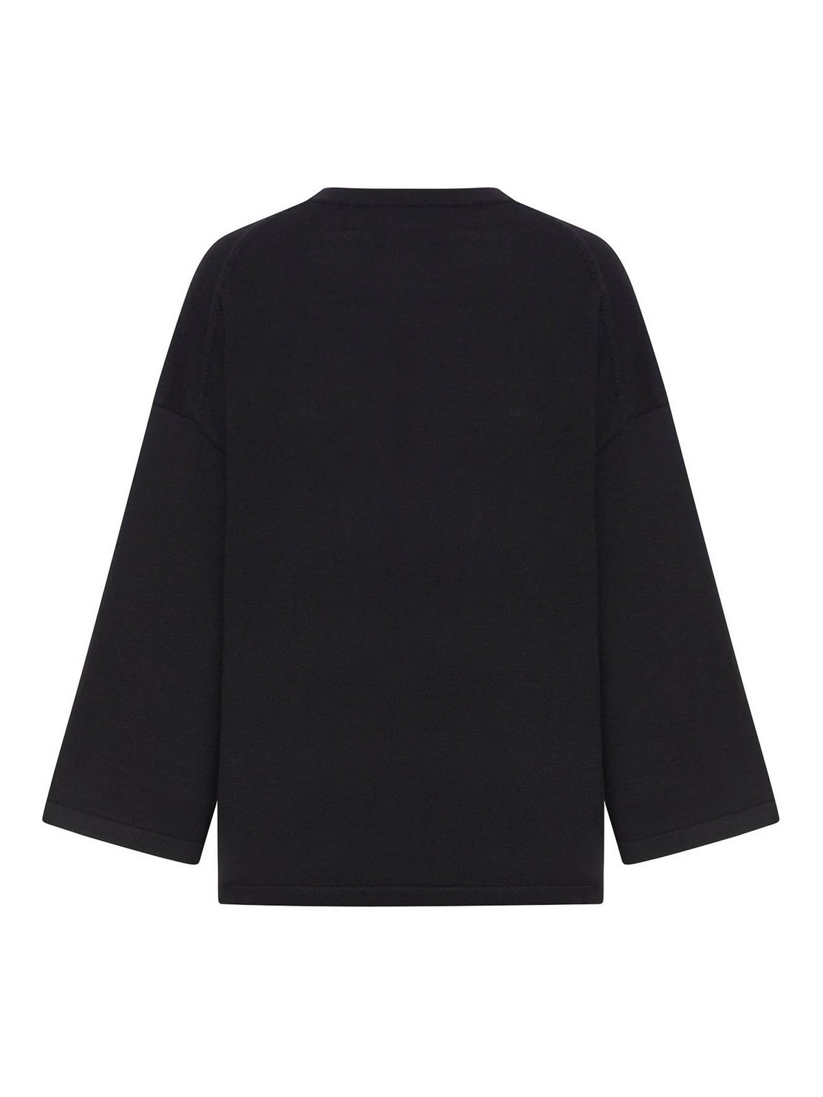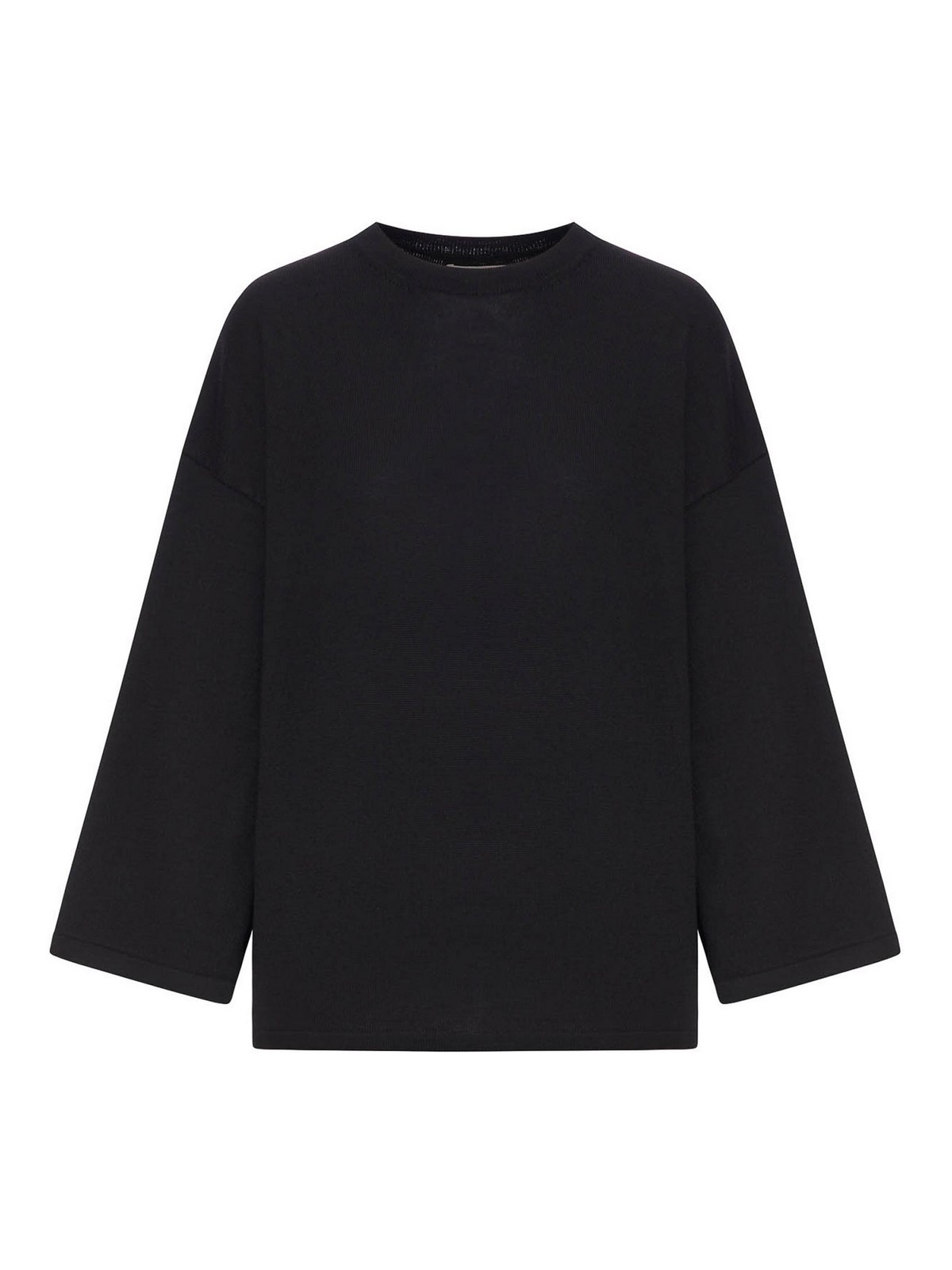 クルーネック、ドロップショルダー、ロングスリーブ、フレア、ストレートヘム、カラーブラック
