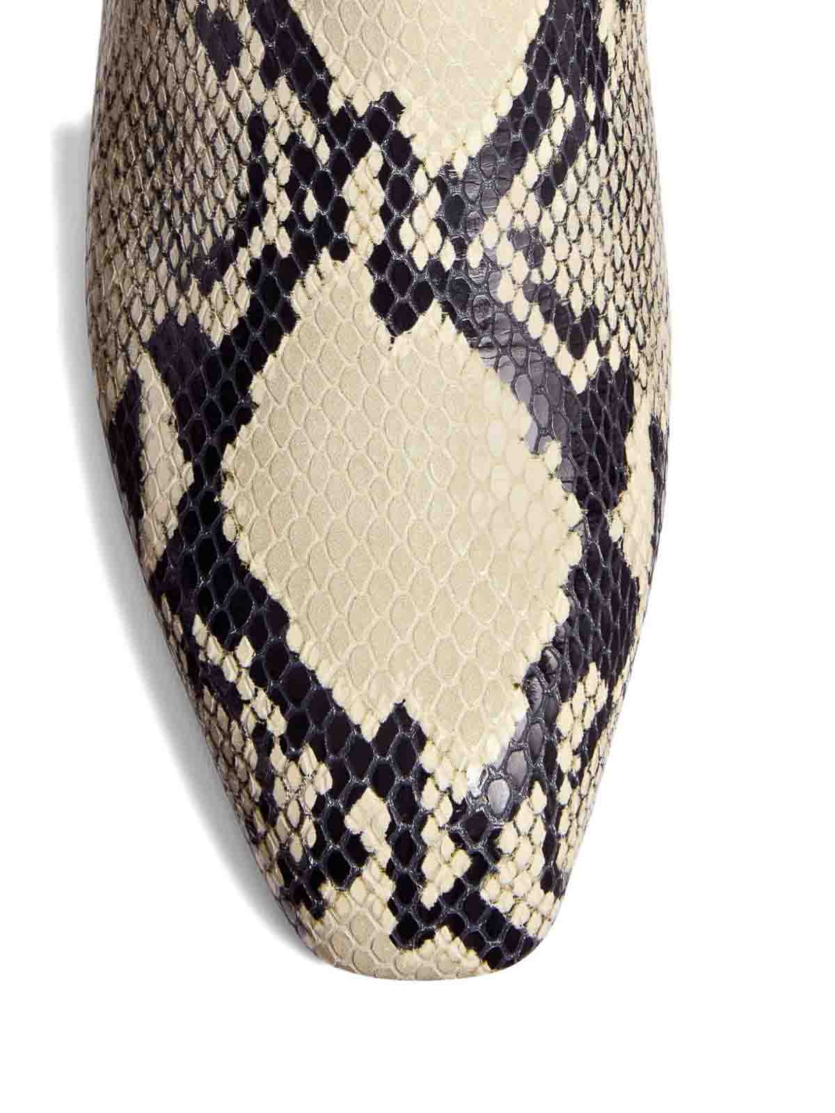 ベージュスネークスキン柄サイドジップ丸いつま先ブランド入り