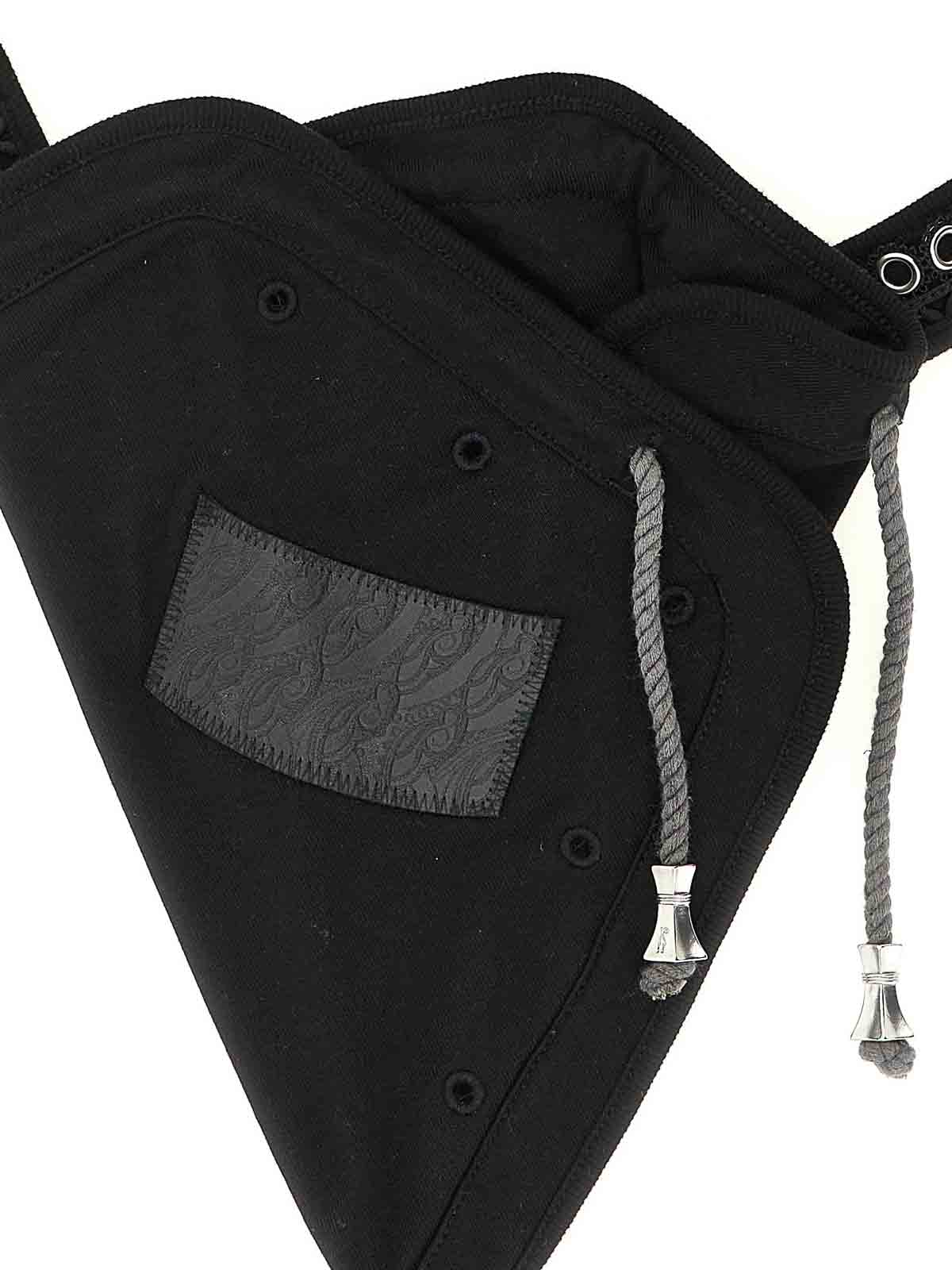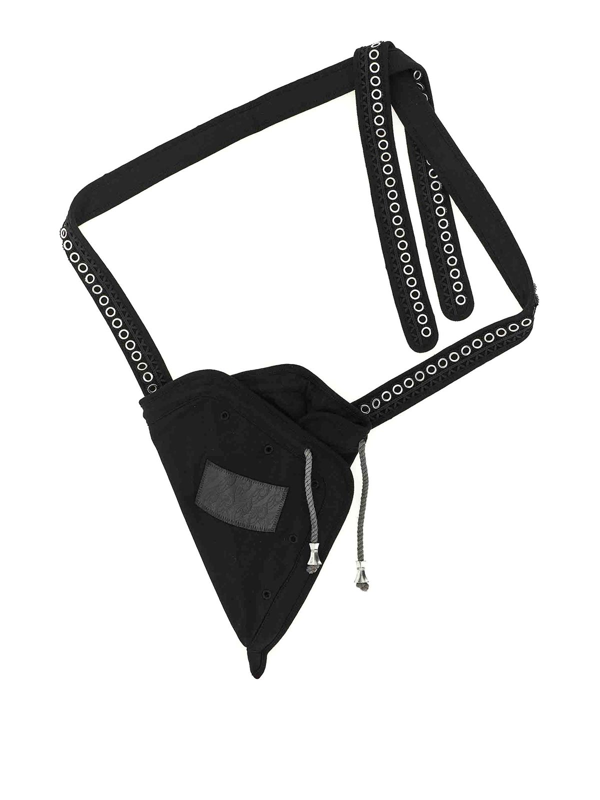 hatha' ヘビーコットンジャージークロスボディバッグは円錐形で、トーン・オン・トーンのレザーパッチとドローストリングクロージャー、穴あきレースのディテールをあしらったストラップ、好きなように結べるメタルリベット。