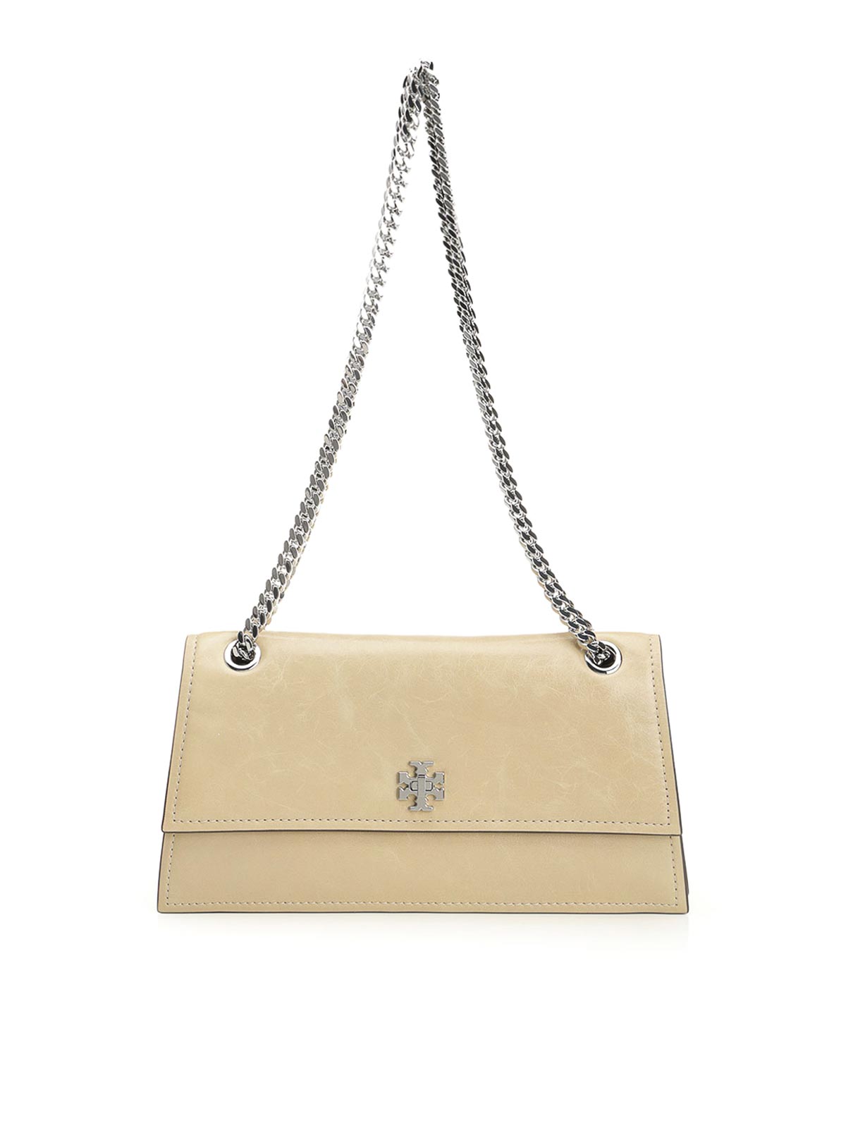 Tory Burch Kira レザーショルダーバッグチェーンショルダーストラップとフラップクロージャー付き、3つのコンパートメント