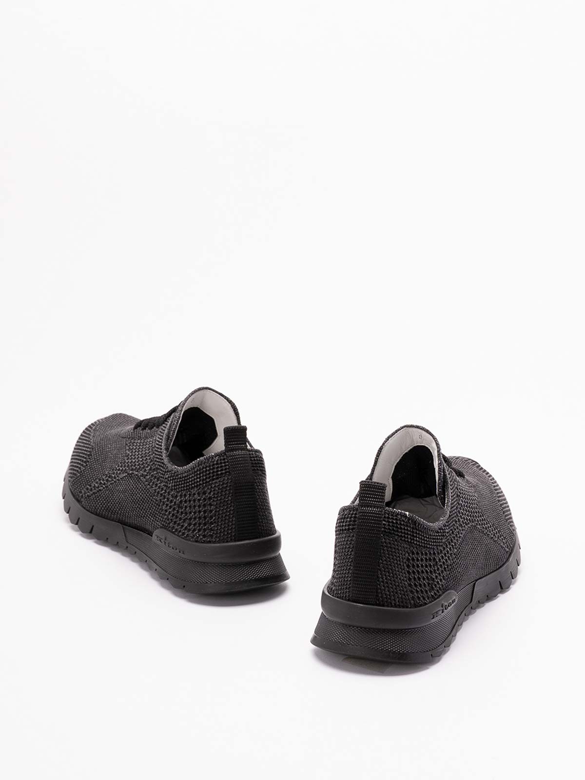 レースアップクロージャー付きブラックニットアッパー、フラットソール、ラウンドトウ、ラバーアウトソール