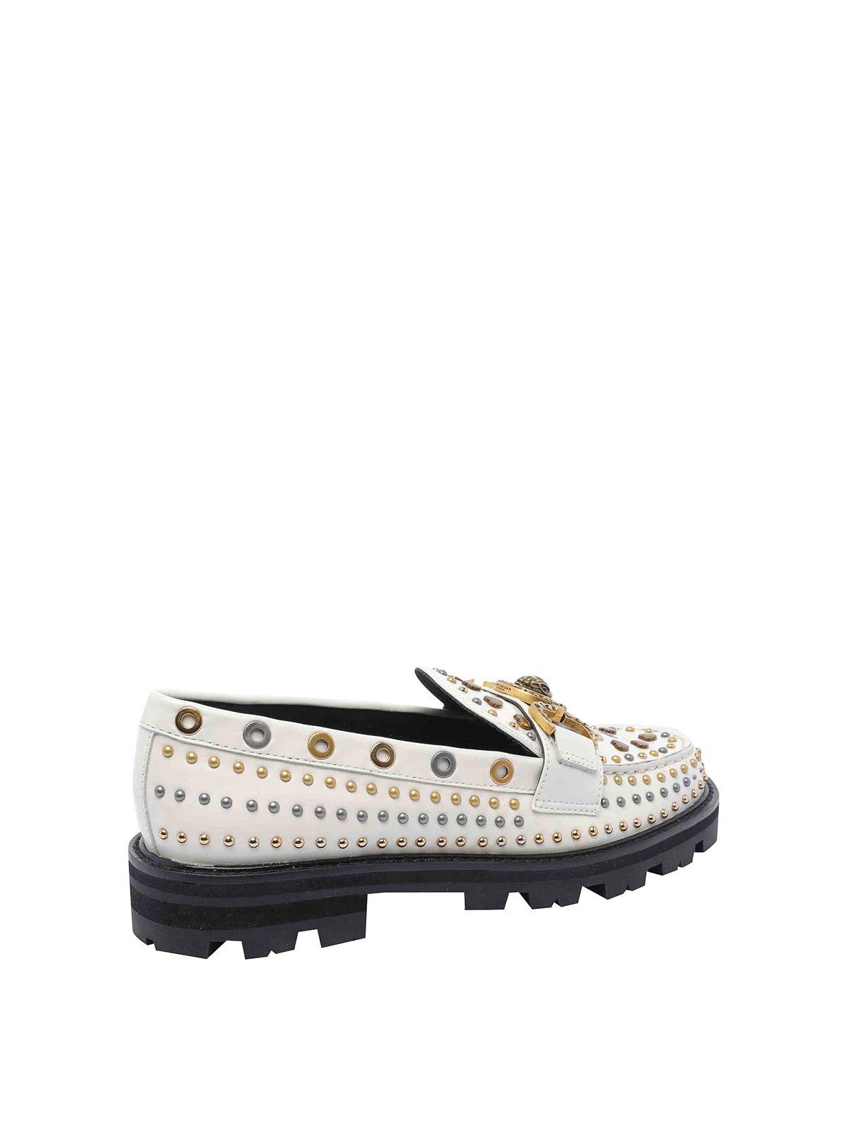 Kurt geiger ホワイトマンションスタッズローファーラウンドトゥスリッポンデザイナーカラー名:ホワイト