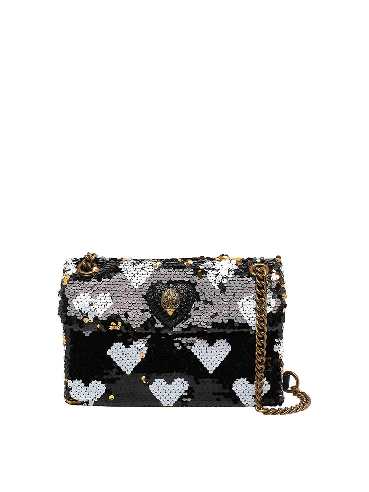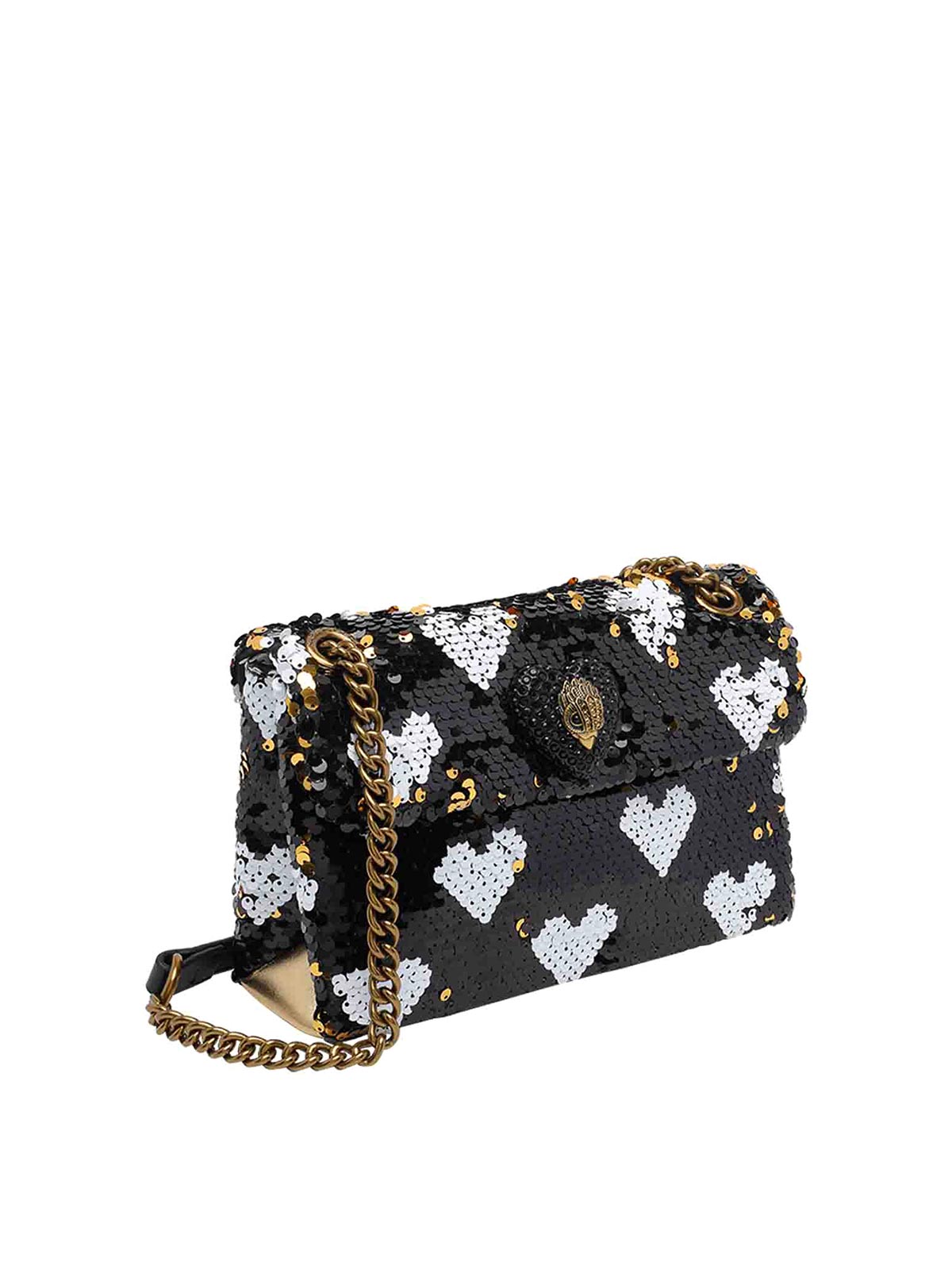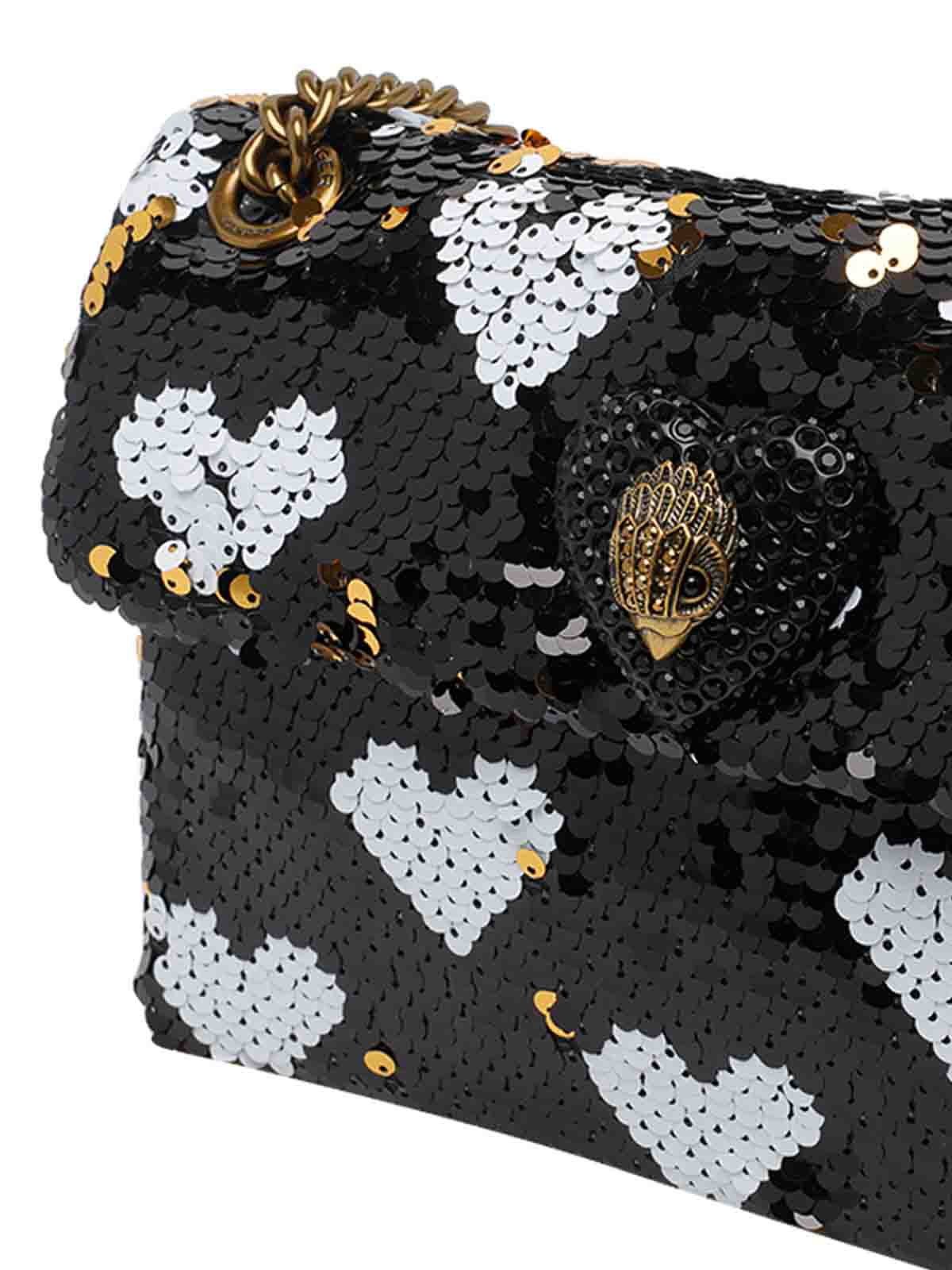 Kurt Geiger ブラックミディアムスパンコールケンジントンラブクロスボディバッグ、マグネットクロージャー、調節可能なスライドチェーンストラップ2本