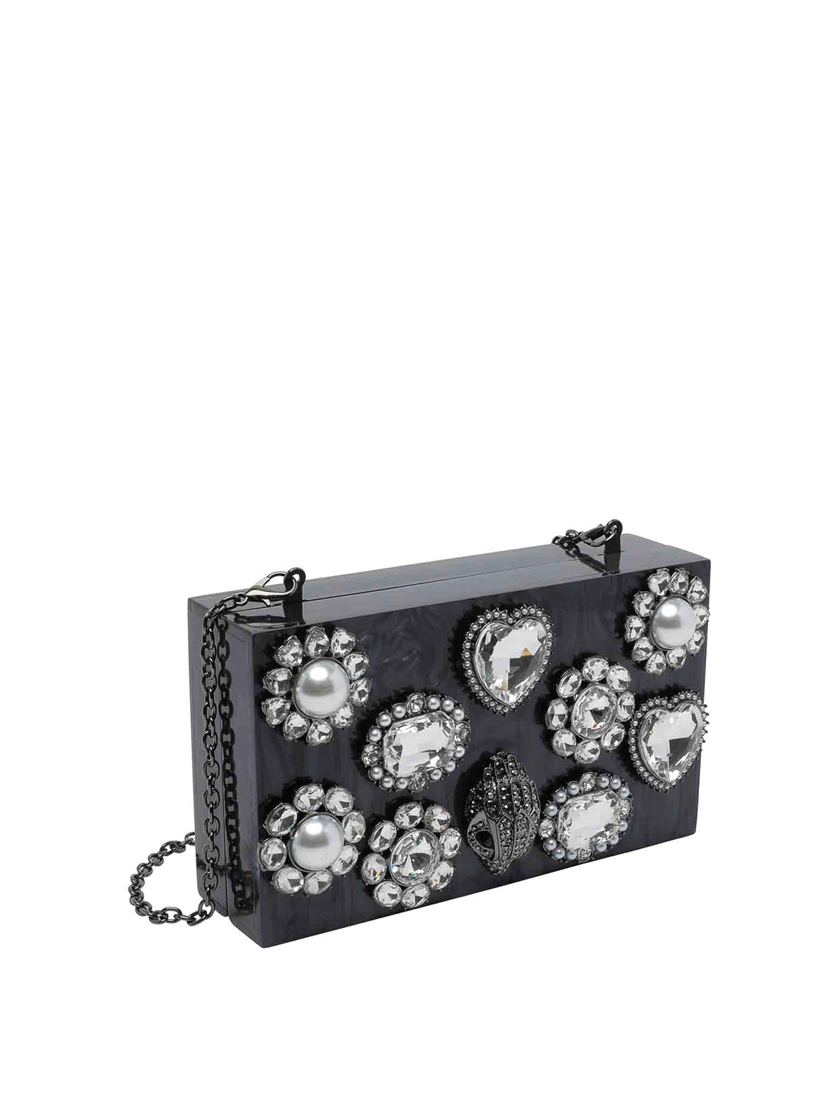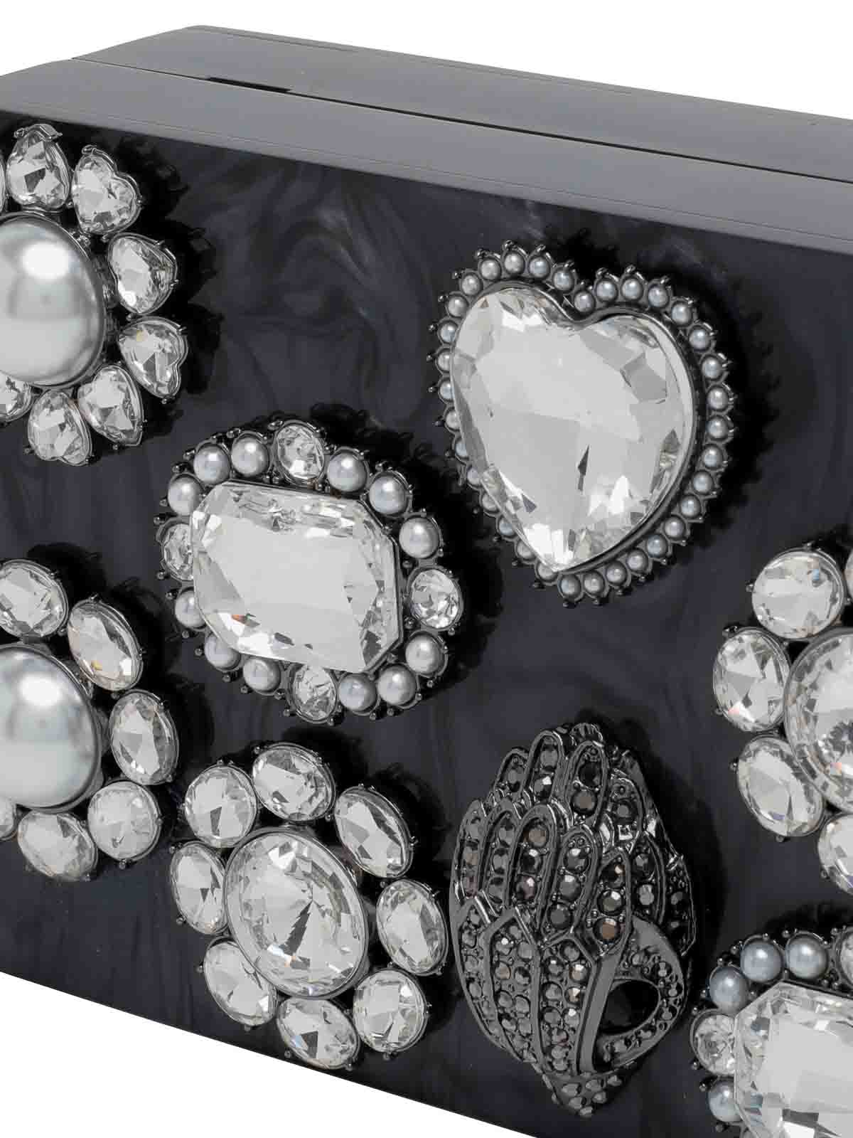 Kurt Geiger ブラッククリスタルボックスクラッチ、マグネットクロージャー、取り外し可能なチェーンストラップ、全面にクリスタル