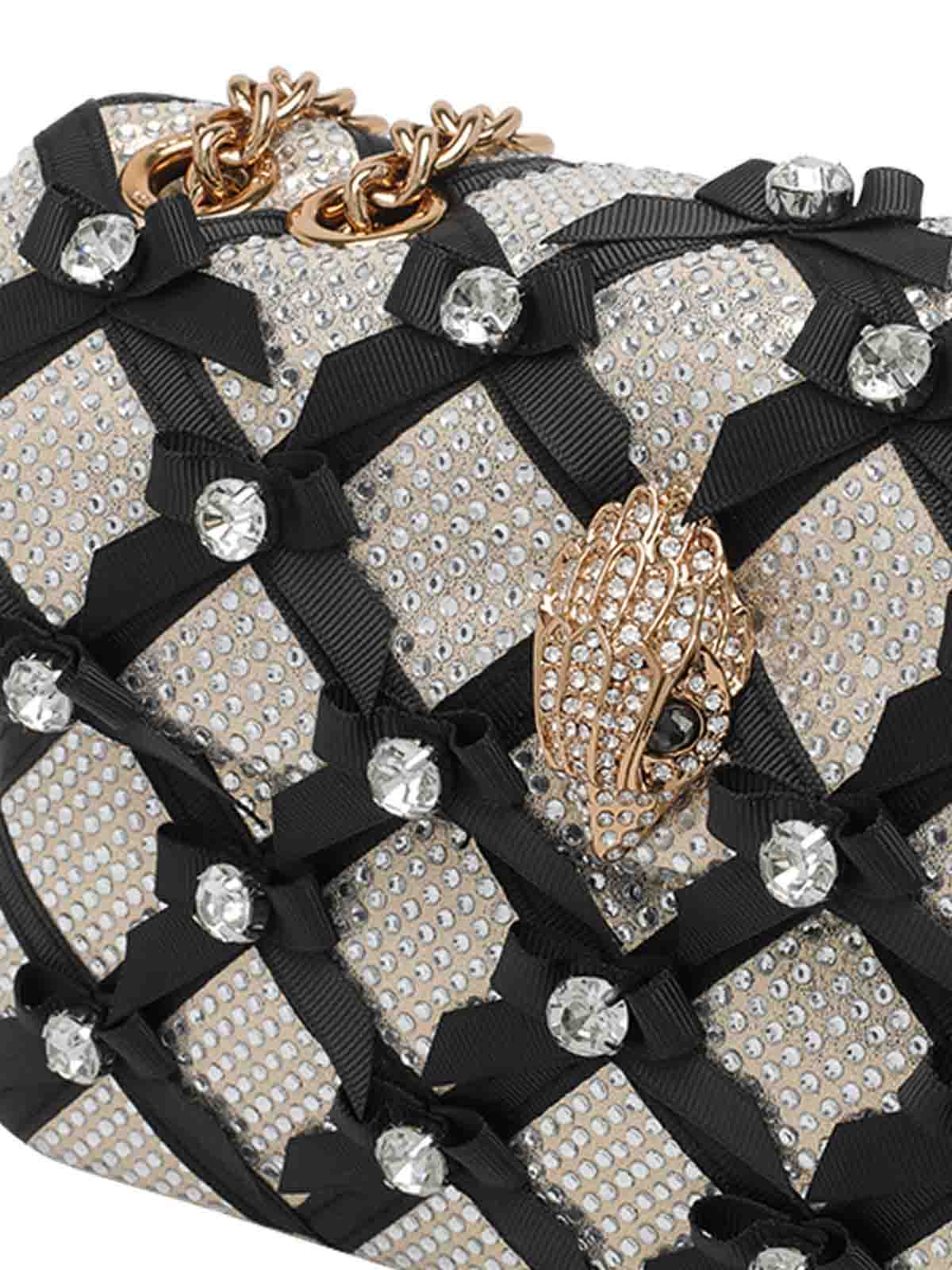 Kurt geiger ベージュとブラックのケンジントンクロスボディバッグ、マグネットクロージャー、内側にオープンポケット、調節可能なスライド式ショルダーストラップ2本、ロゴ