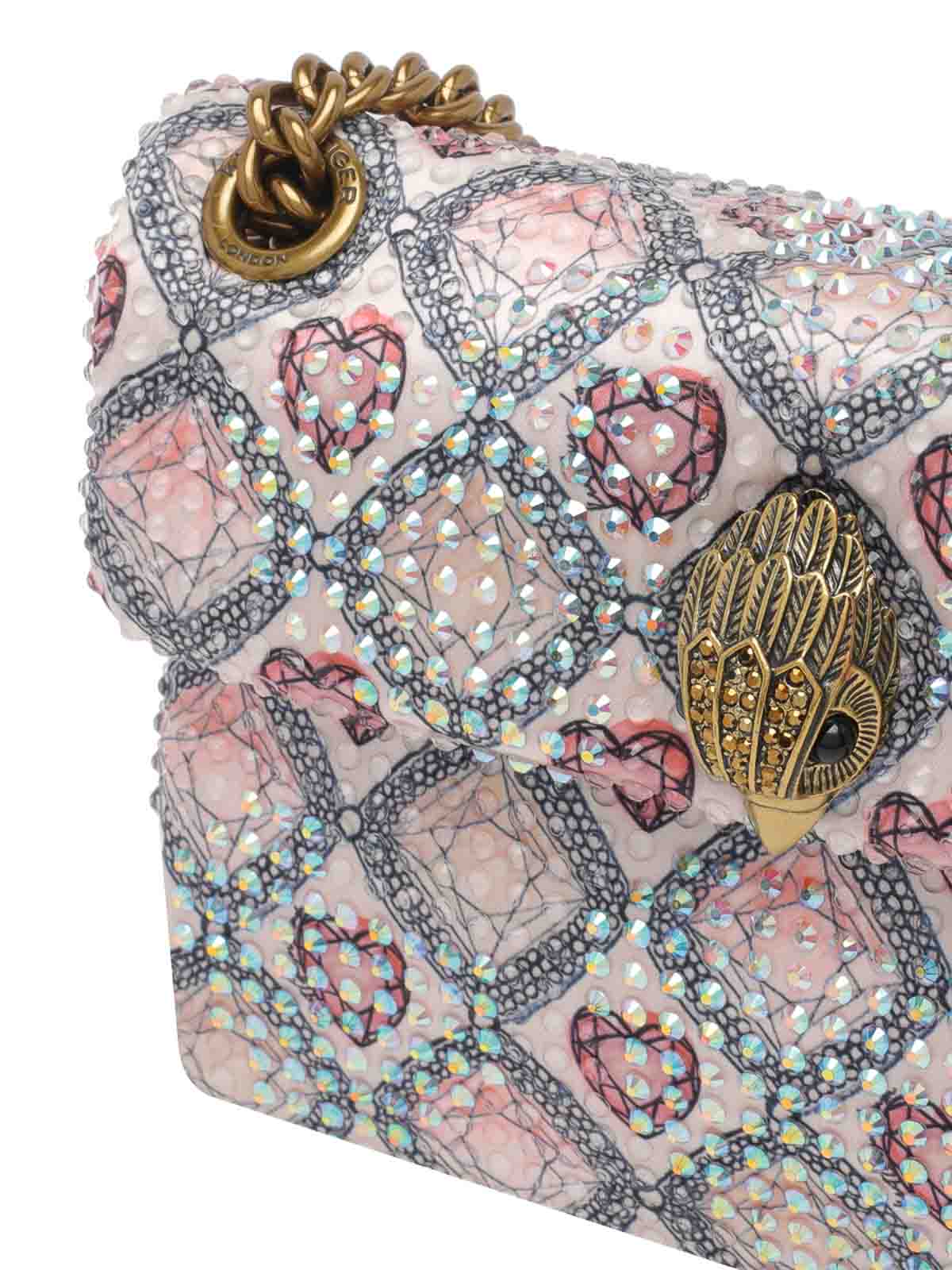 Kurt geiger ベージュミニケンジントンクロスボディバッグ、マグネットクロージャー、内側にオープンポケット、調節可能なスライドチェーンストラップ2本