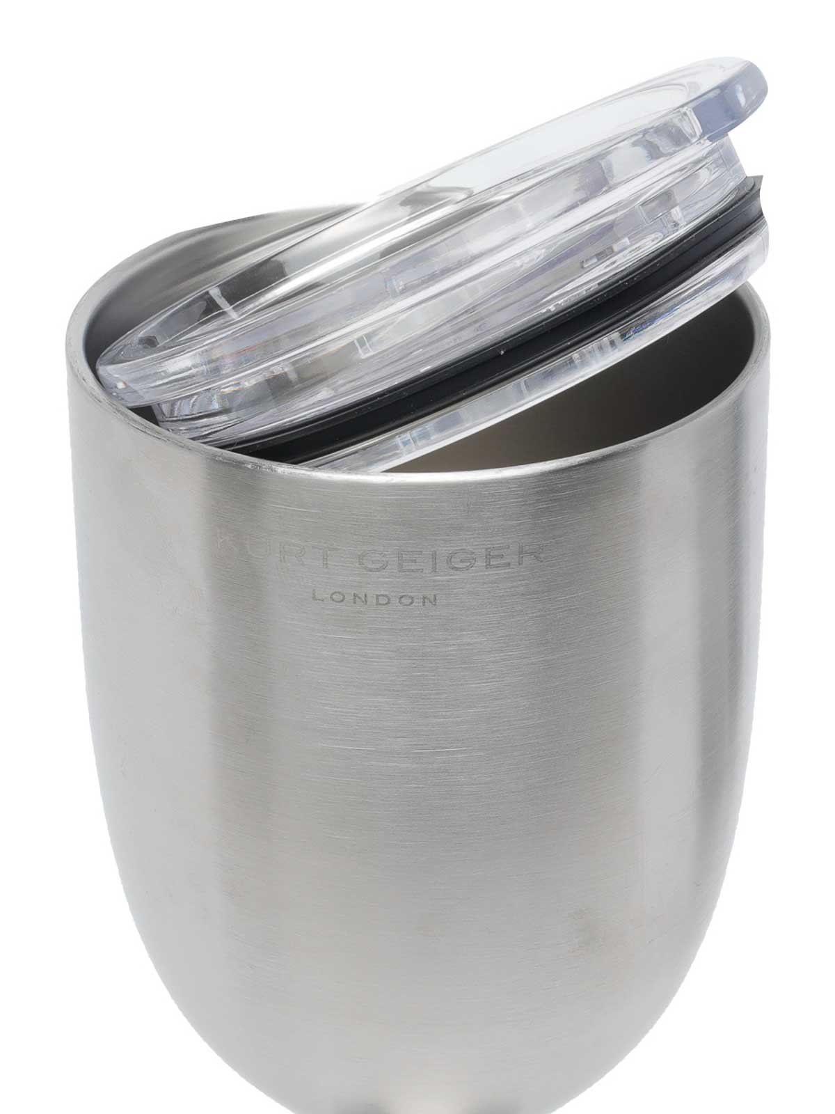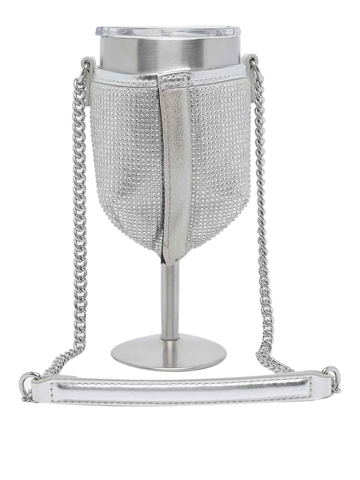 このケンジントンワイングラスは蓋で断熱されています。クロスボディのカバーとホルダーは、クリスタルと黒いイーグルヘッドで装飾された黒い布の外装が特徴です
