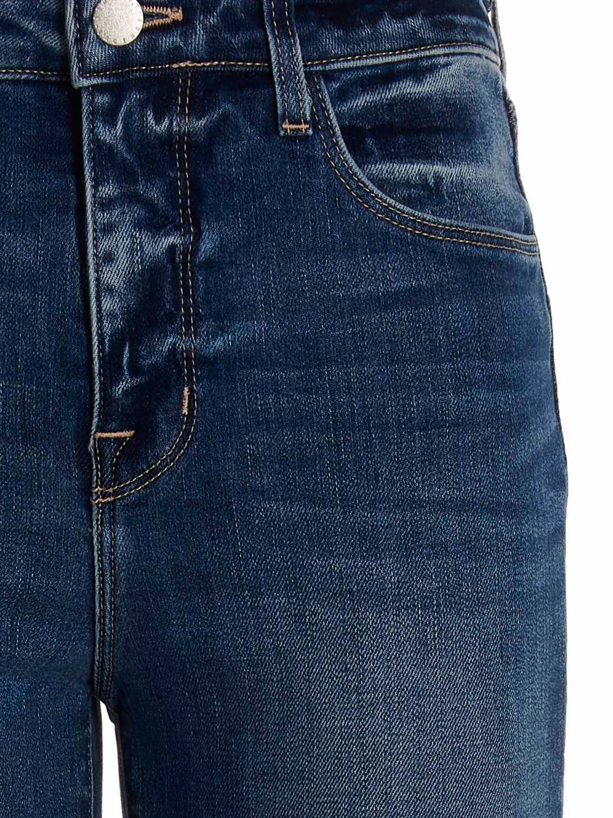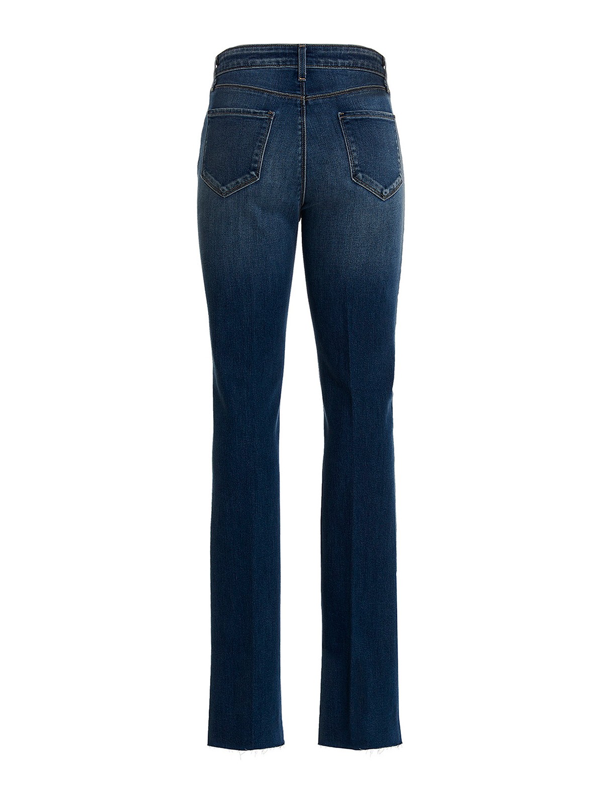 Ruth' ストレッチコットン混紡デニムジーンズ、ファスナーとボタン留め、ポケット5つ、ハイウエスト、ストレートレッグ