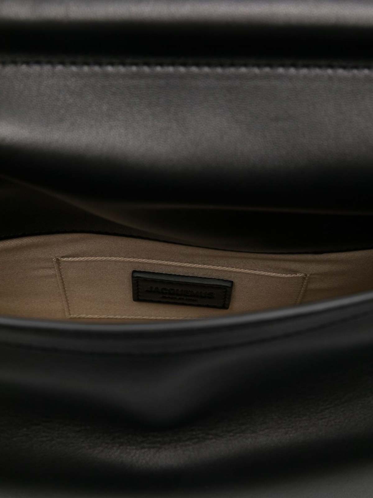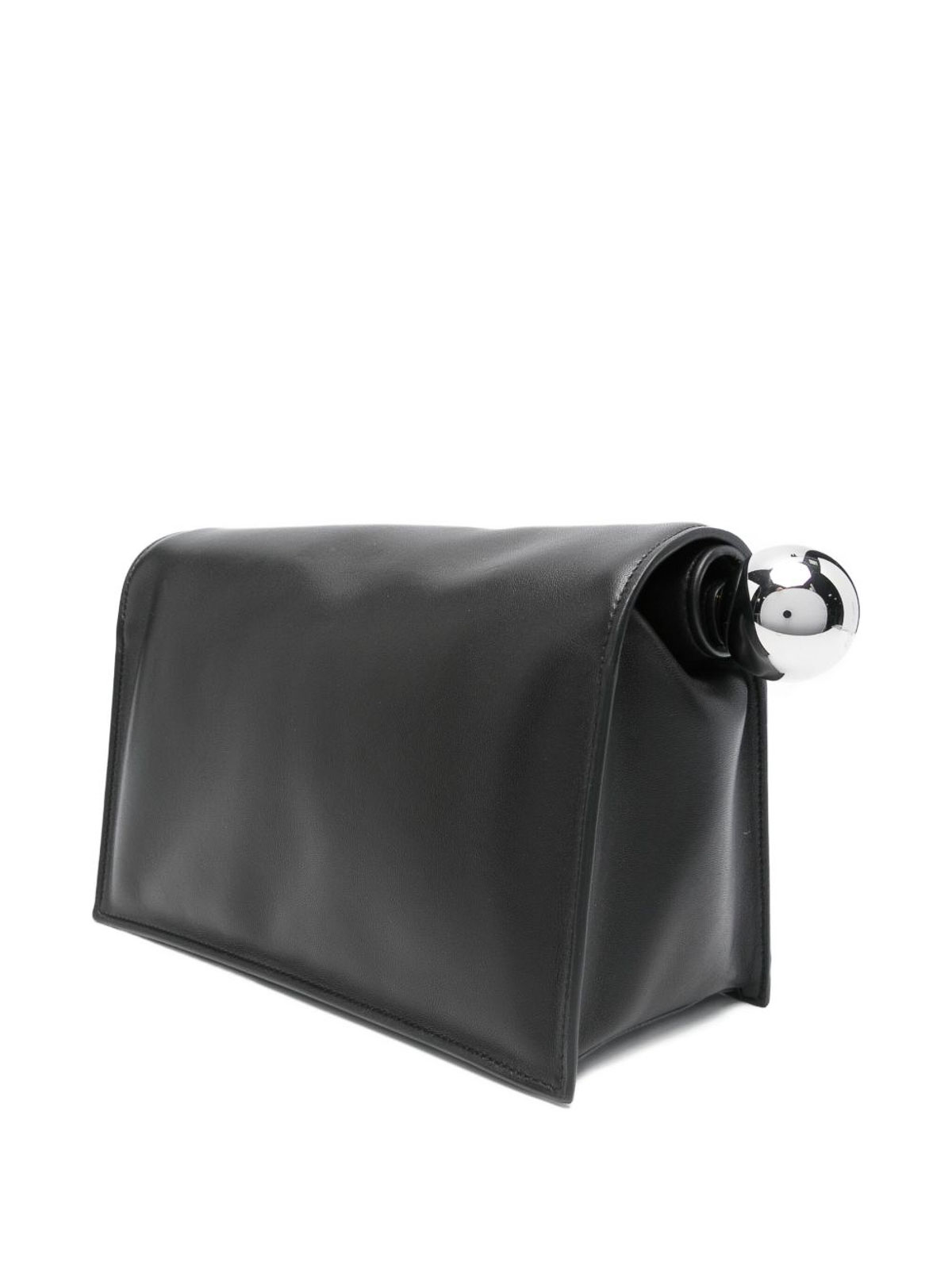 Jacquemus「ラ・ポシェット・ロンド・カー」クラッチバッグ、ブラック、両端に円と四角が入っています