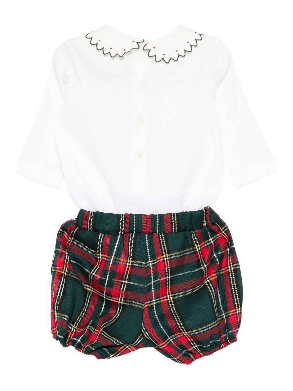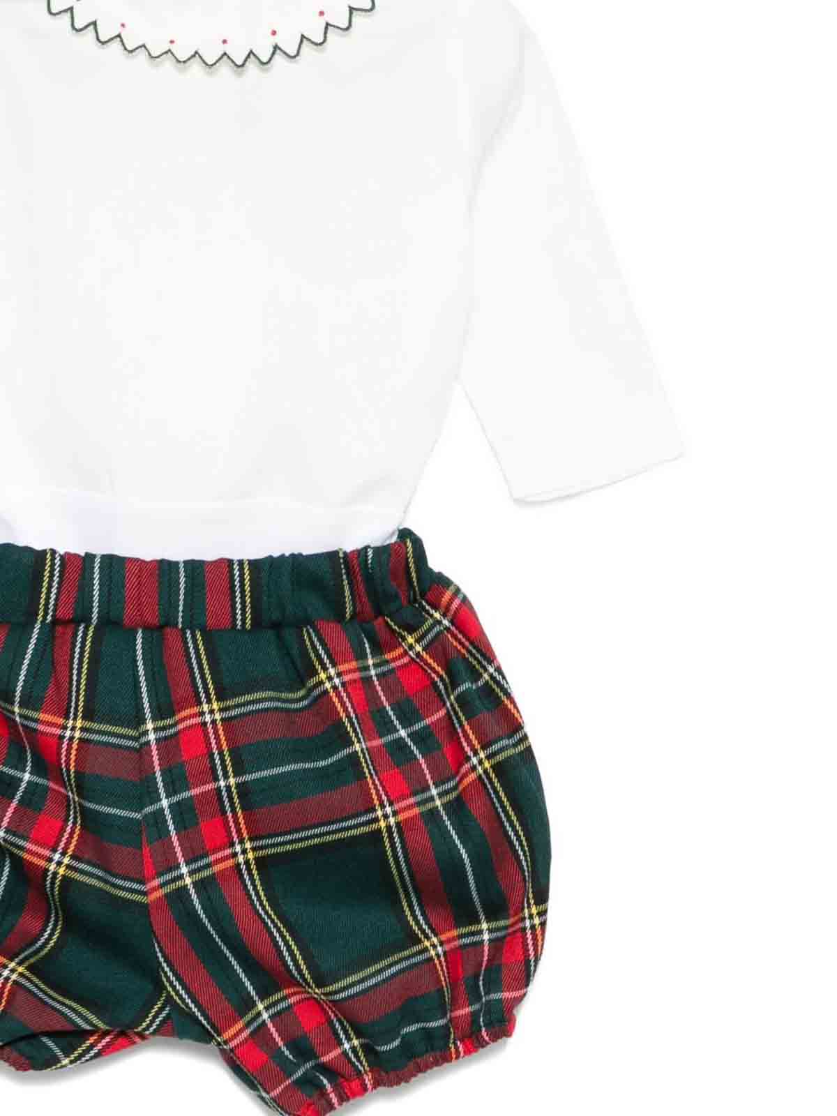 タータンプリント、伸縮性ウエスト、ロングスリーブ、クルーネック、刺繍ディテールのセット