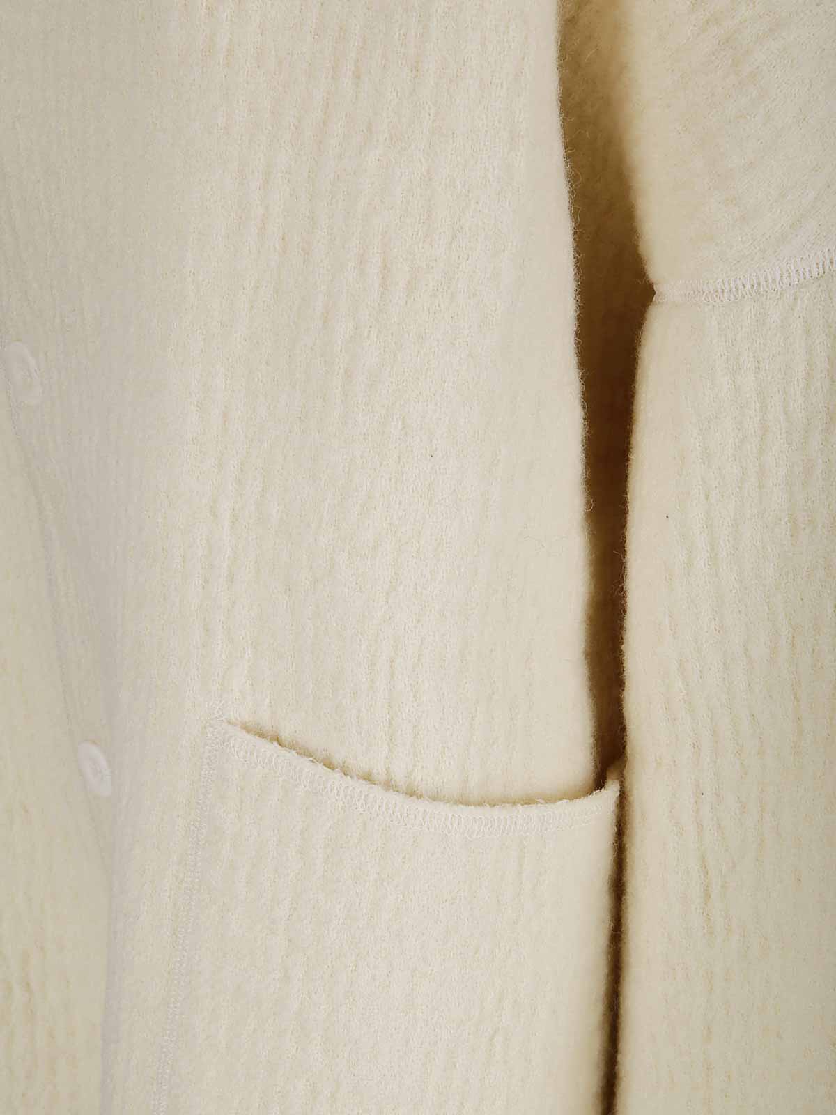 マンダリンカラーのブレザー、ボタン留め、ポケット2つ、ストレートカット。