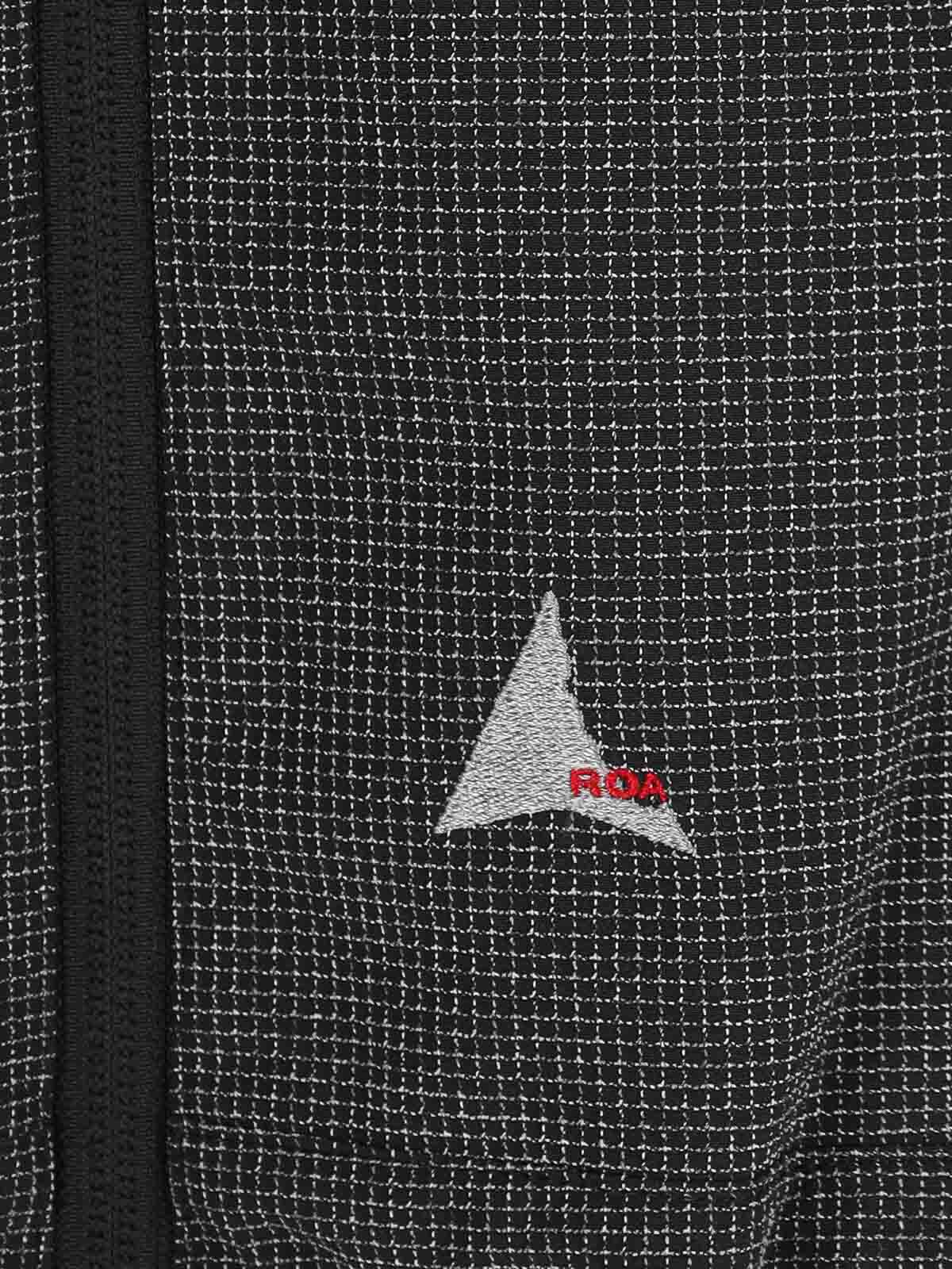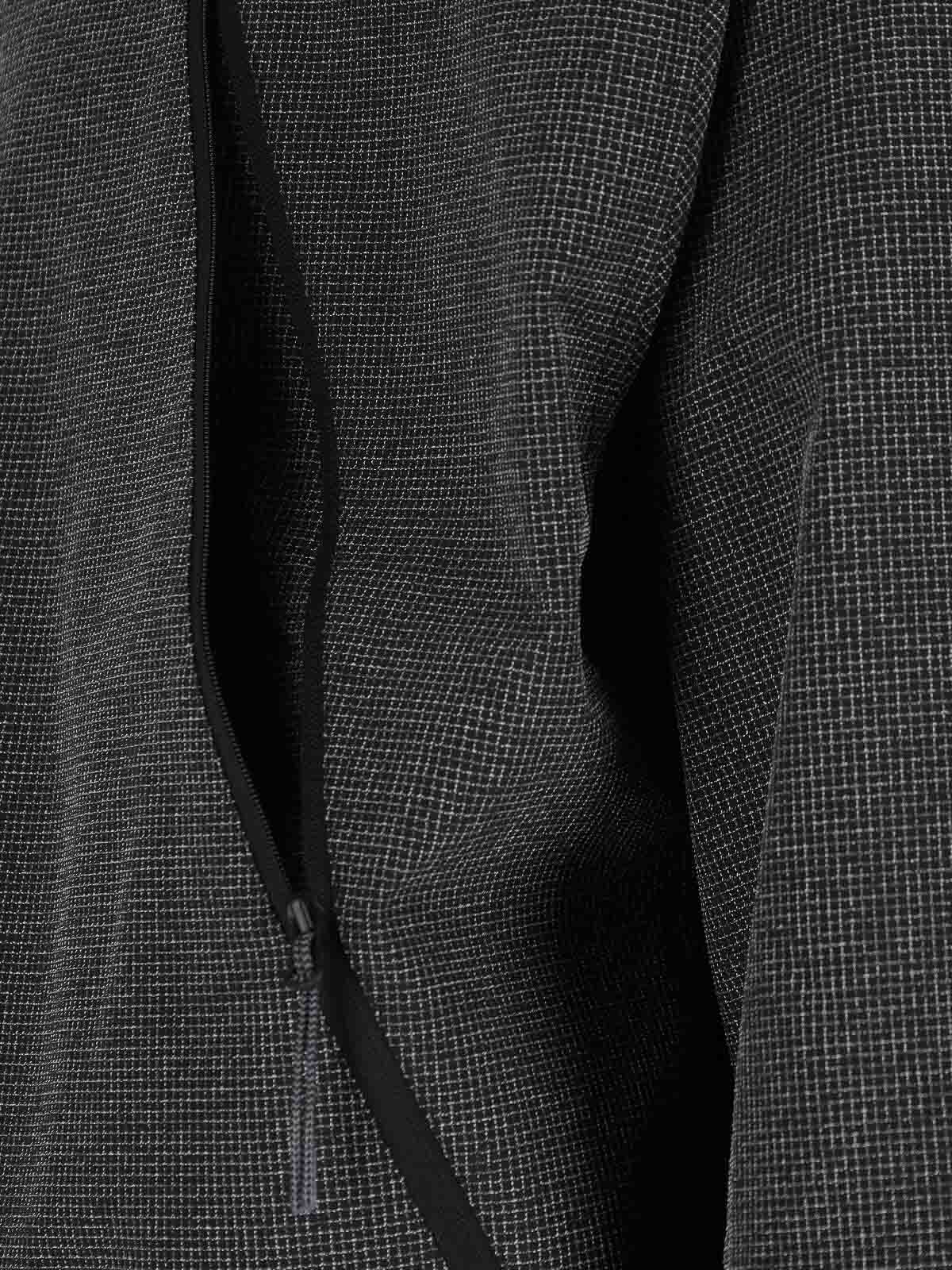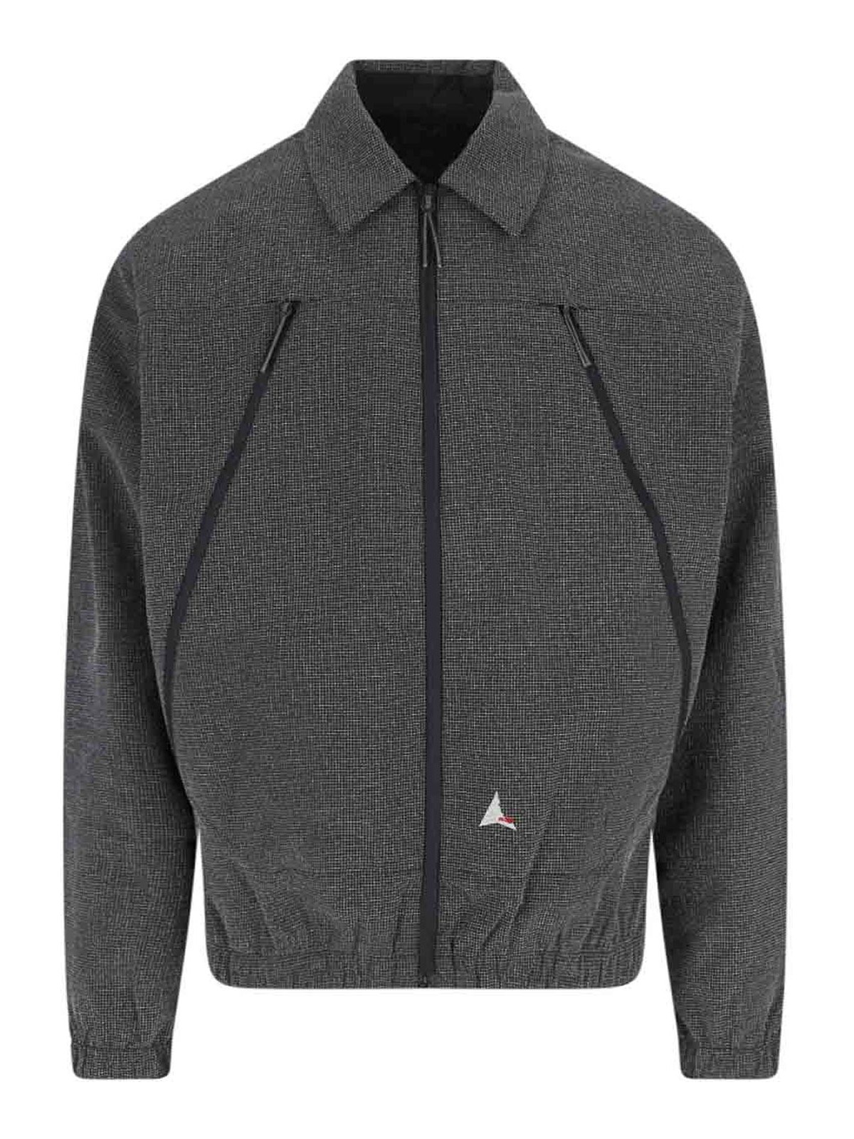 Lamon roa テクニカルジャケット、グレー生地、クラシックカラー、ジップクロージャー、サイドファスナーポケット2つ、前面にコントラストカラーのロゴ刺繍、裾はストレートで伸縮性があります。