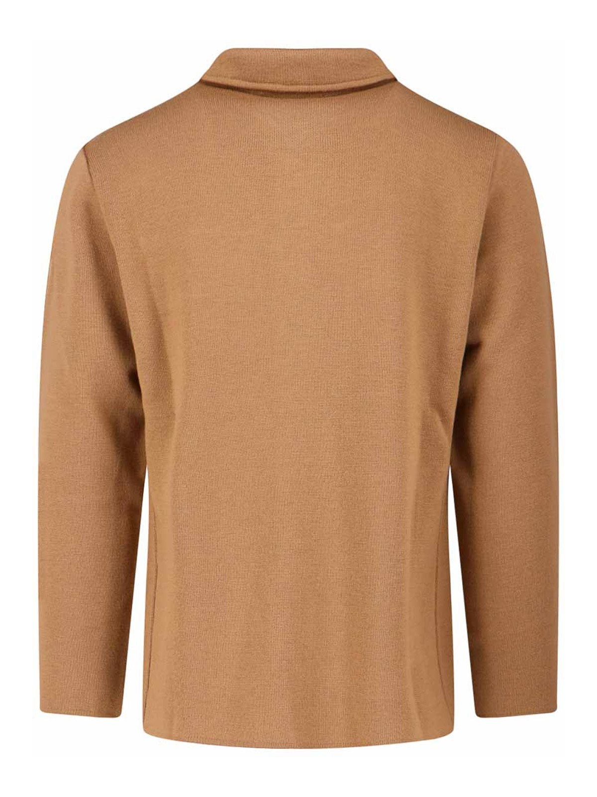 ラルディーニバージンウールジャケット、ベージュ、ニット、クラシックカラー、ボタンクロージャー、フロントポケット2つ、サイドポケット2つ、ストレートヘム。