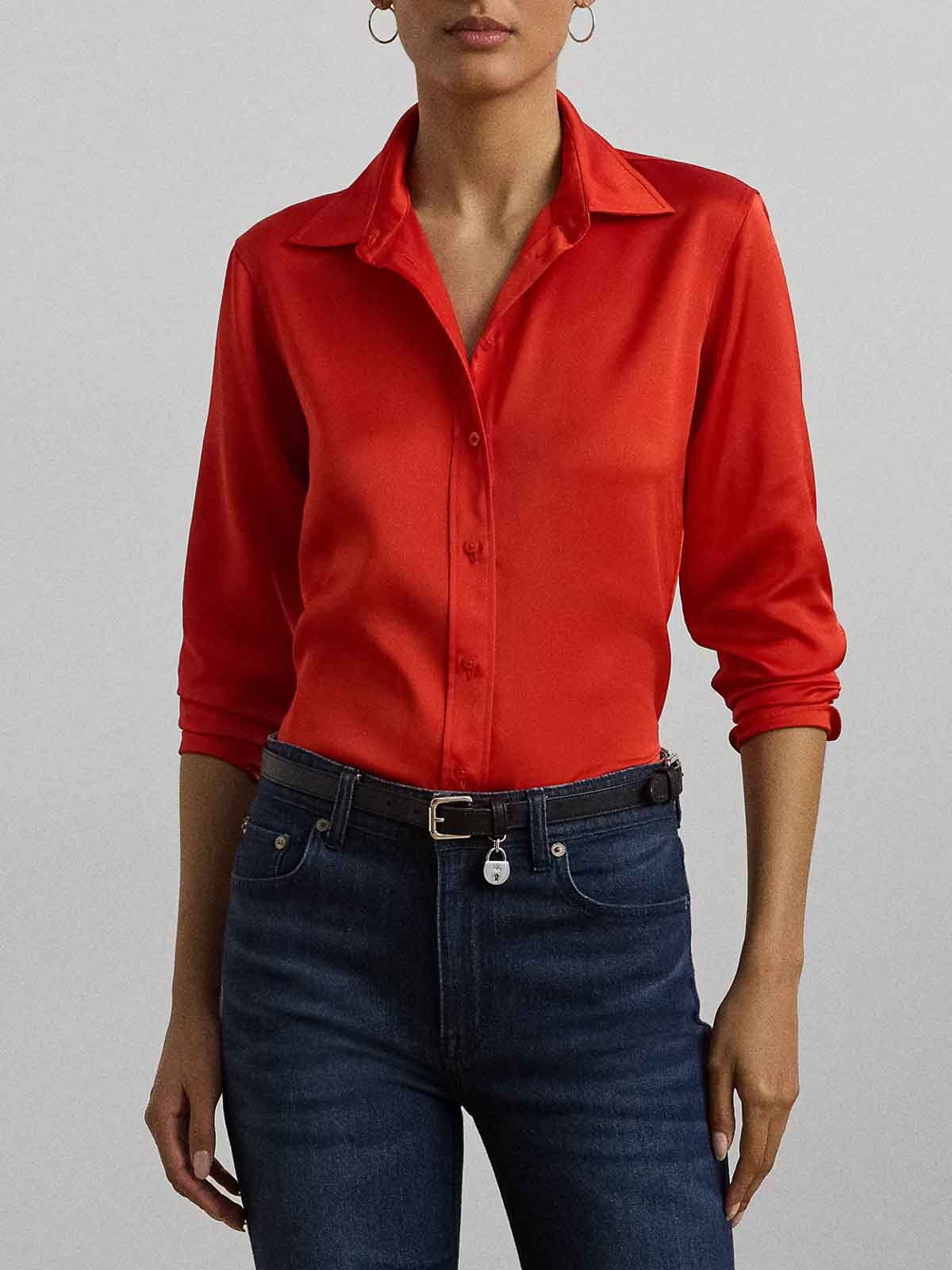 Lauren Ralph Laurenのジャメルコ柄ロングスリーブボタンフロントシャツは、スタイリッシュで用途の広い服で、スタイルと着心地を1つにまとめることを求める現代の女性にぴったりです