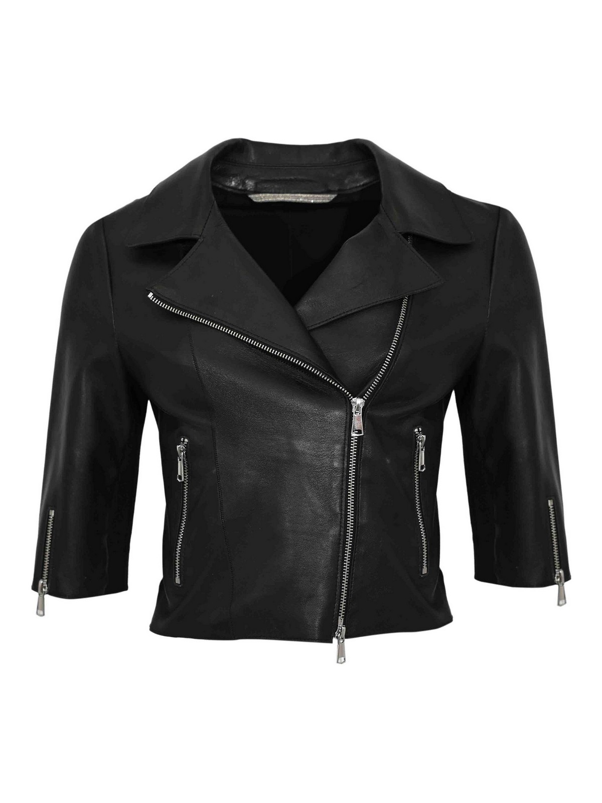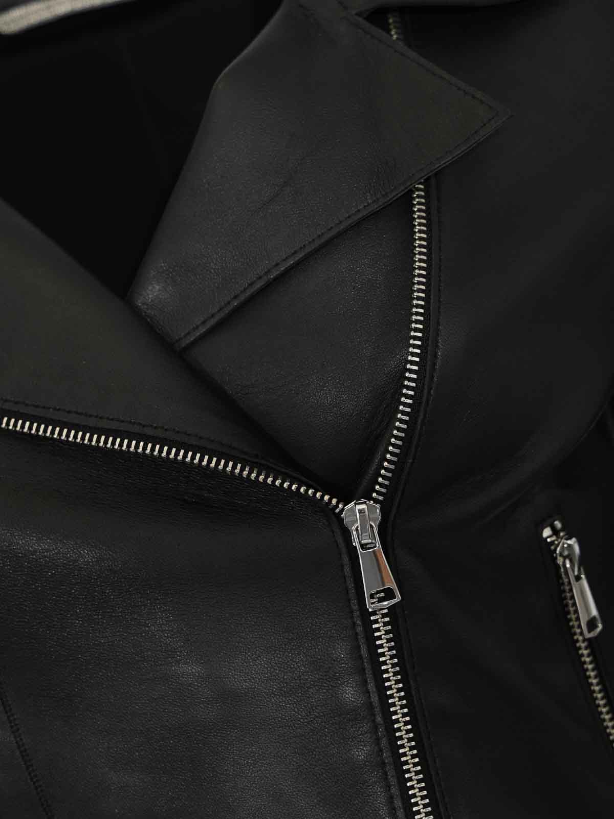 女性用レザージャケット、レザーオーソリティ、ココモデル、ファブリック:スムースレザー、パターン:ソリッドカラー、スリーブ:下部にジッパー付き、襟:ラペル、クロージャー:アシンメトリーフロントジッパー、ポケット:ジッパー付きサイドポケット2つ、ディテール:伸縮性のあるサイドインサート、ビジブルメタルジッパー、フィットライン、裏地:S、フィット:スリム