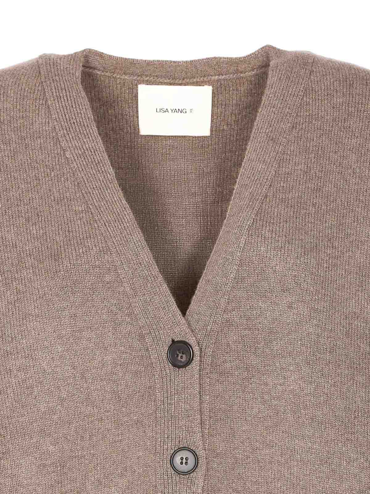 Lisa Yang トリュフブラウンアメリーカーディガン、Vネック、ボタン留め