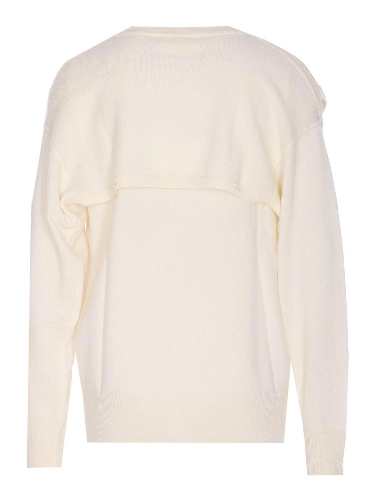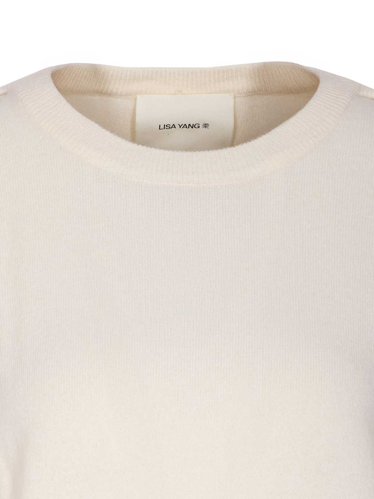 Lisa Yang ホワイトオテリアセーター、クルーネック、ロングスリーブ、袖にカットアウトディテール