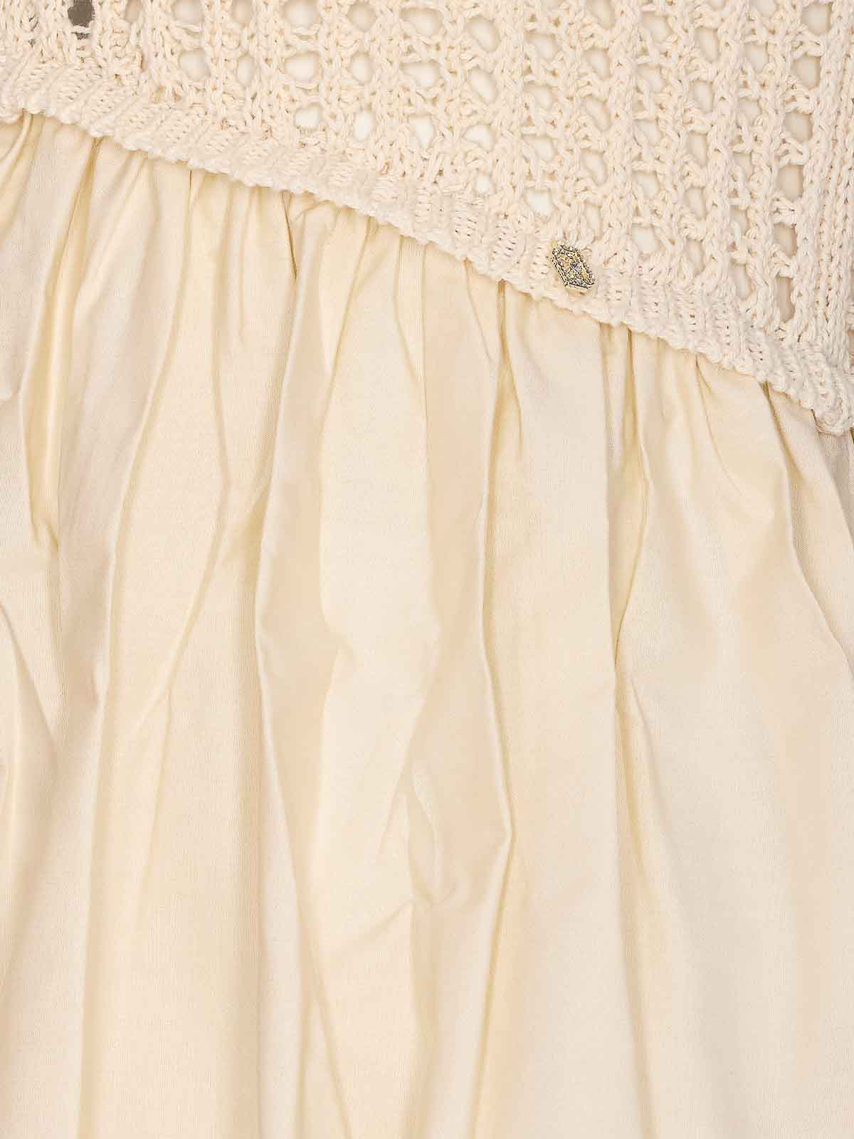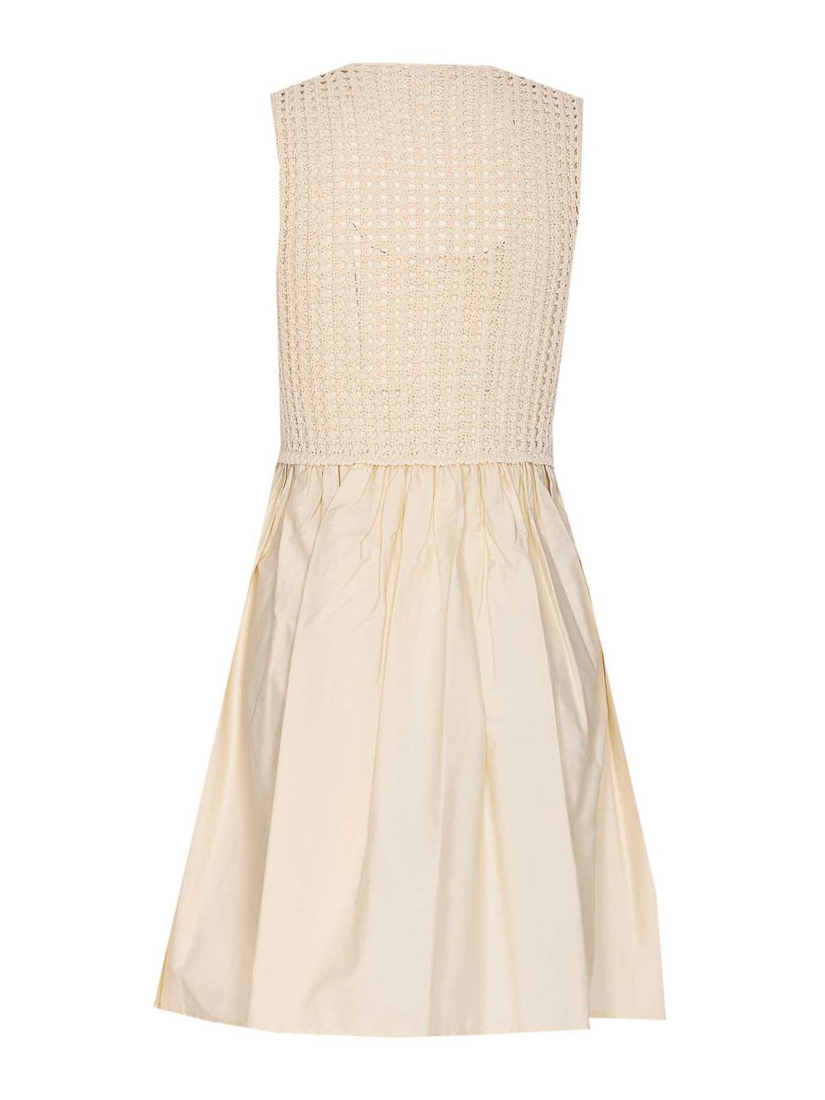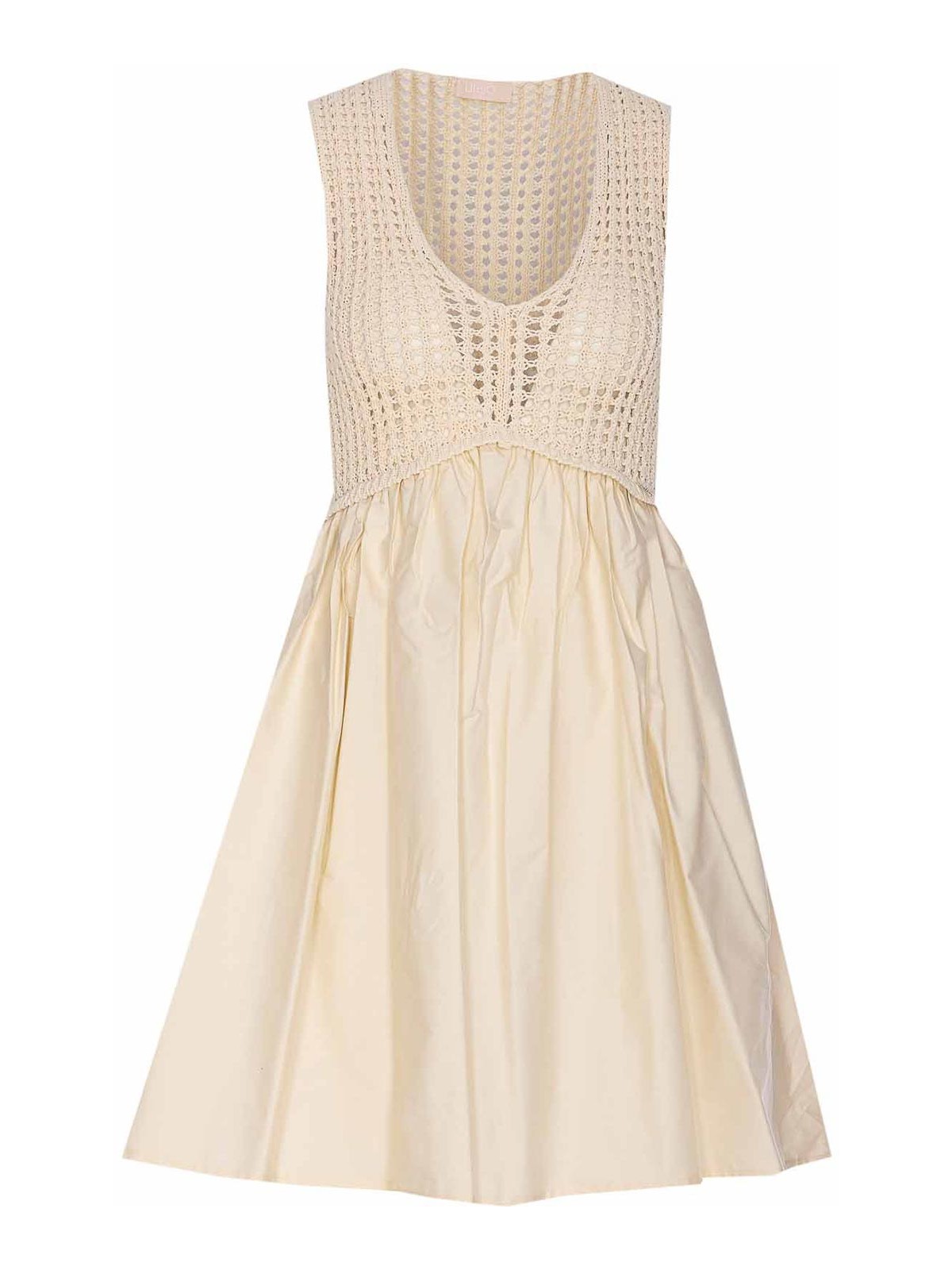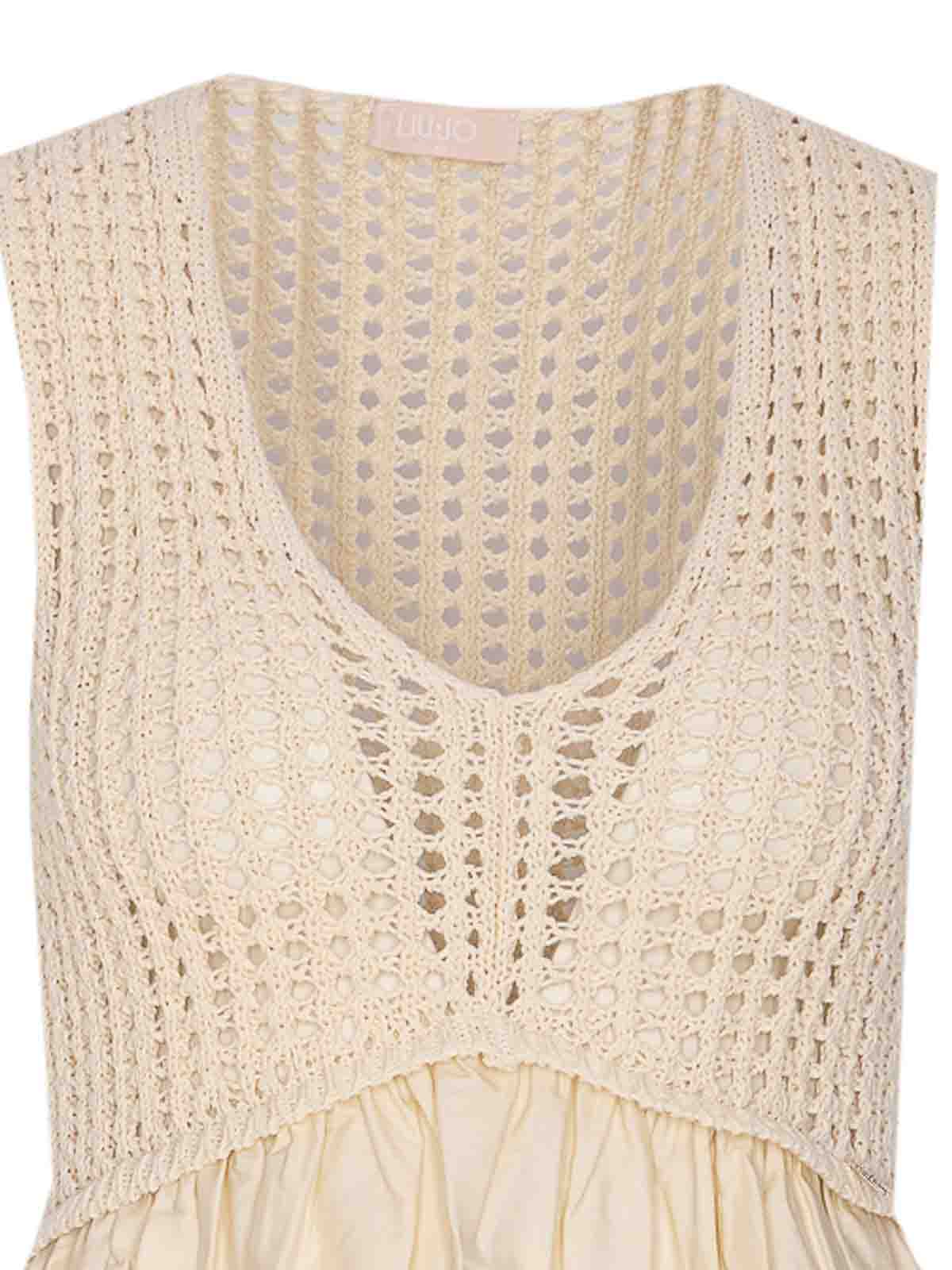 ベージュドレスかぎ針編みトップノースリーブミニモデル