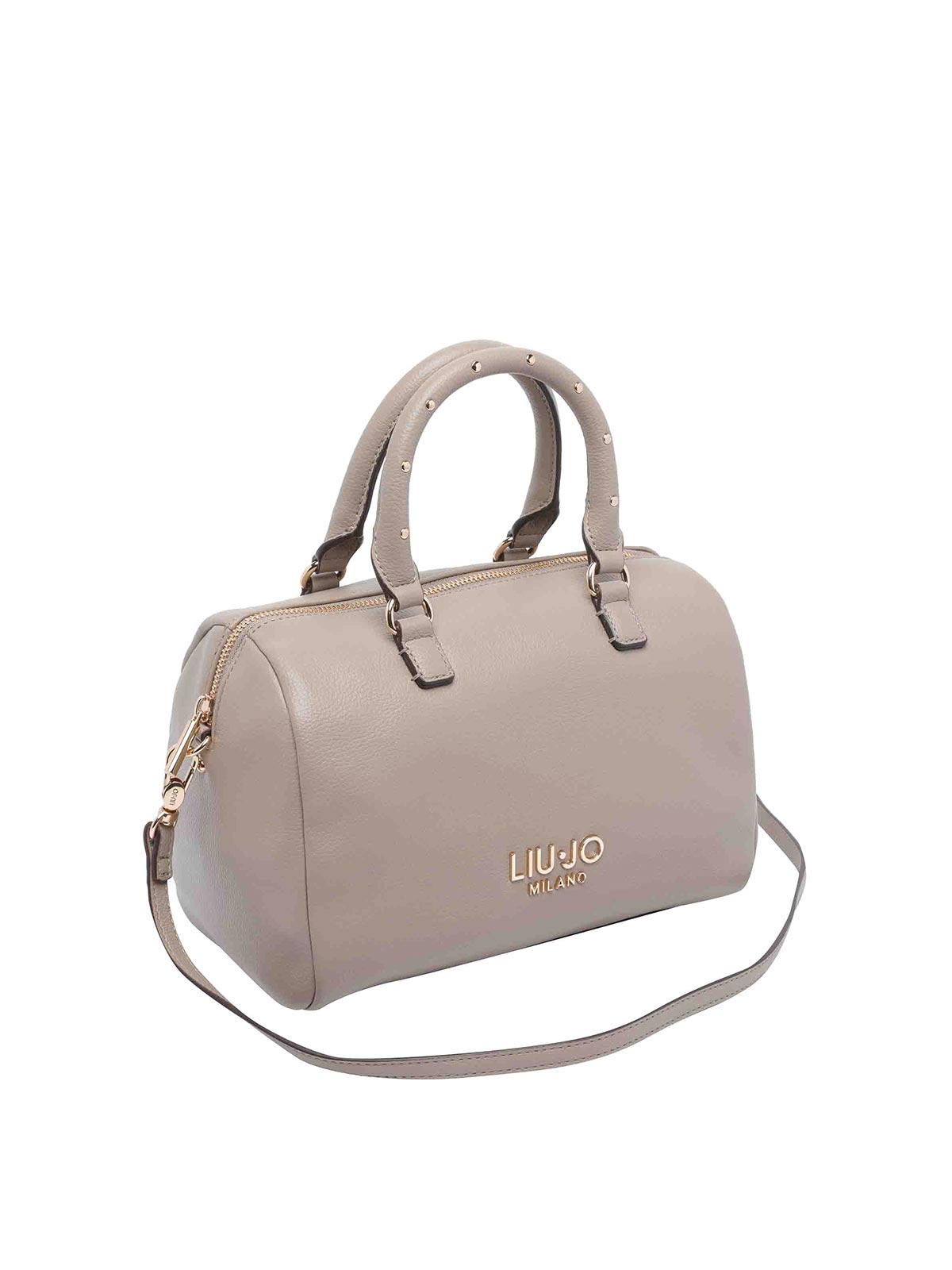Liu jo ベージュサッチェルバッグ、ファスナー開閉、ファスナー付き内ポケット、オープンポケット1つ、ハンドル2つ、調節可能で取り外し可能なショルダーストラップ、前面にロゴ