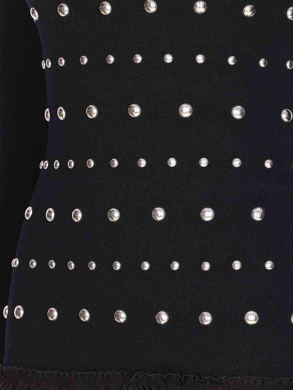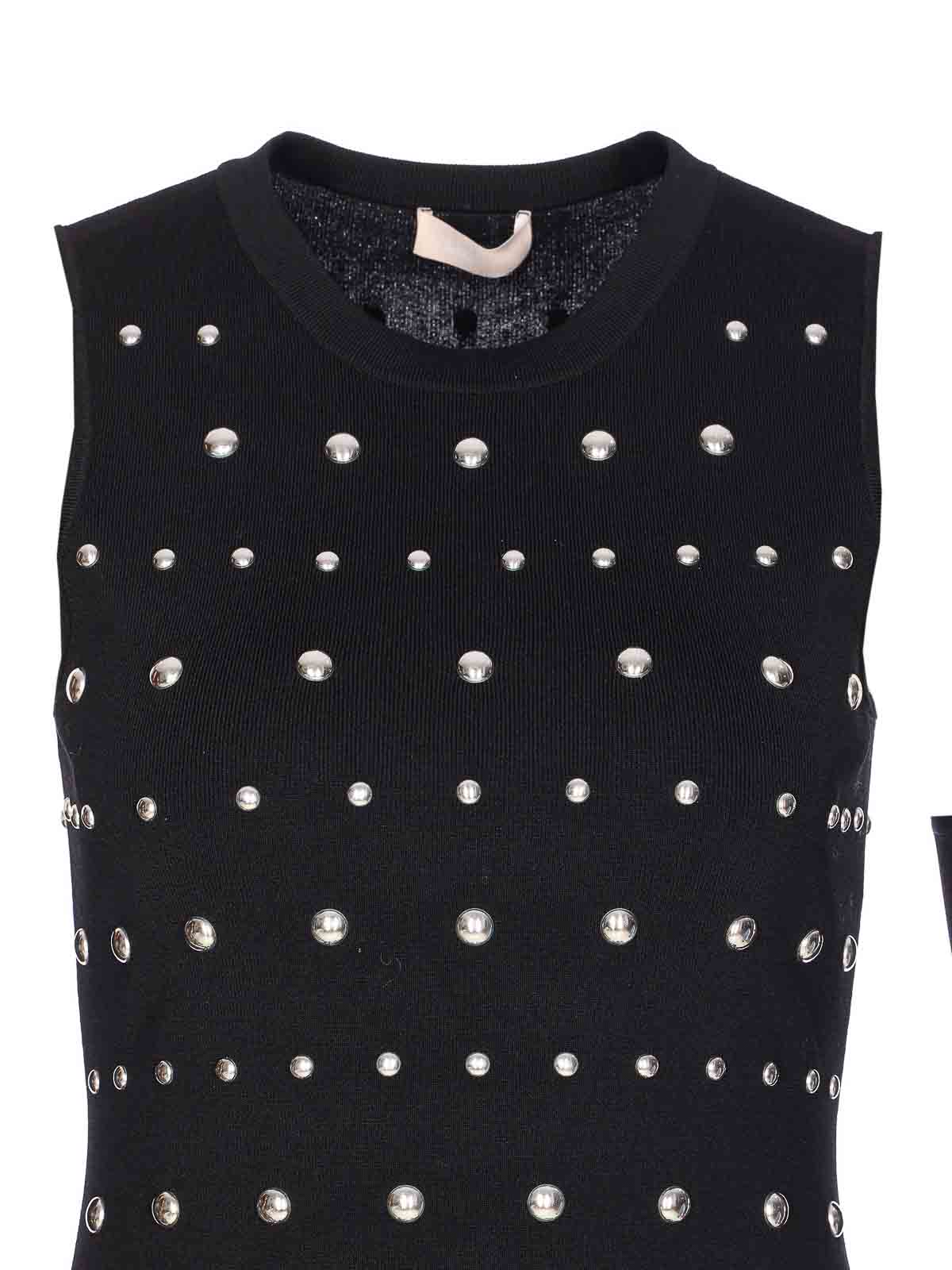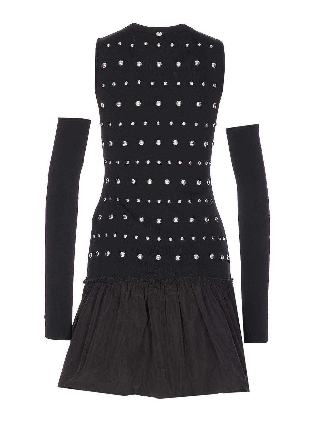 Liu Jo ブラックドレス、ミニモデル、ノースリーブ、クルーネック、オールオーバーアプリケーションディテール、取り外し可能なスリーブディテール