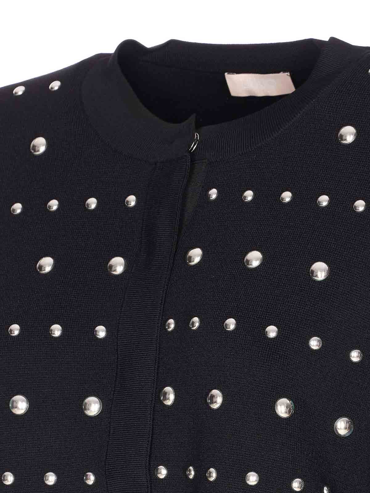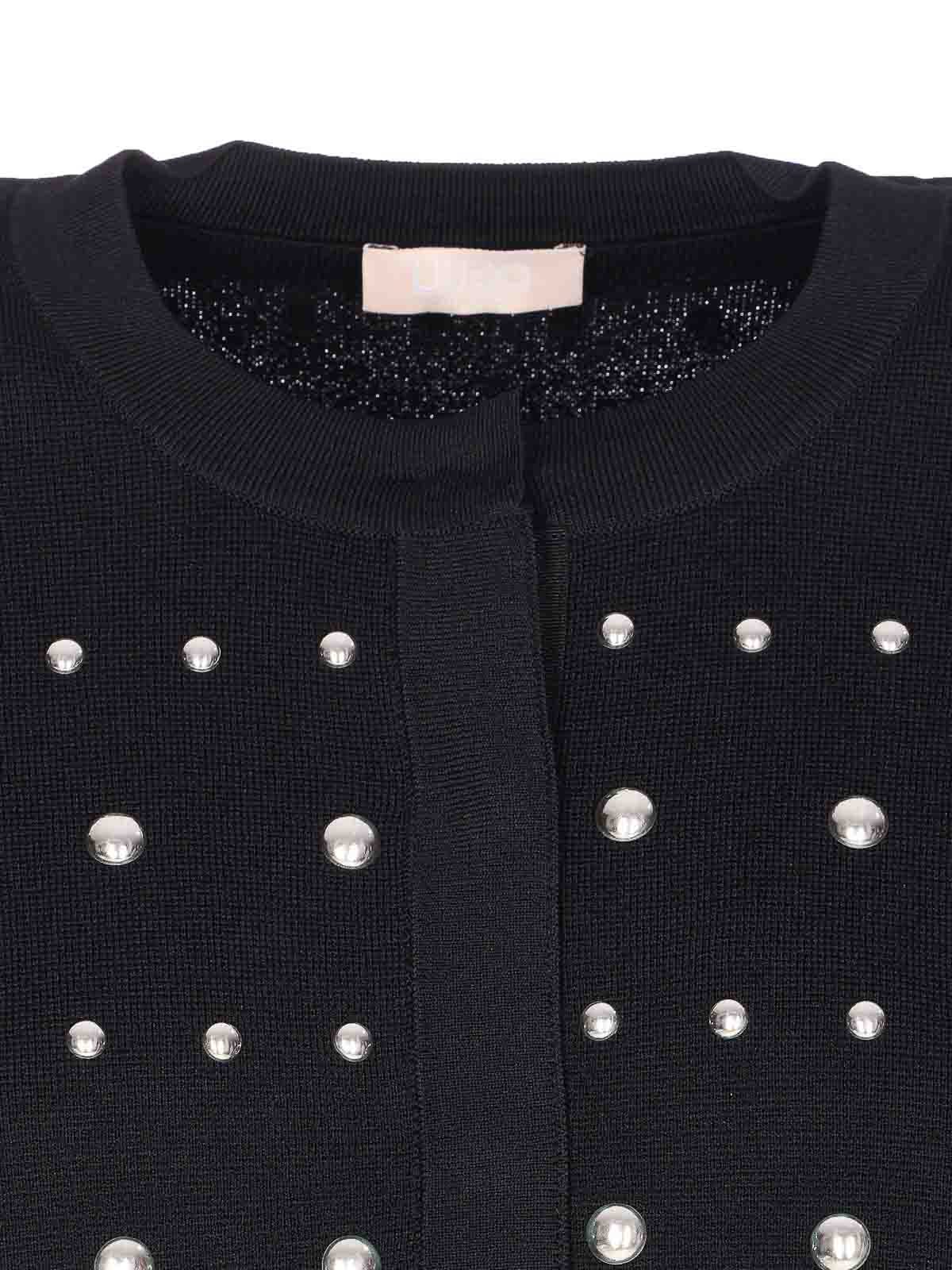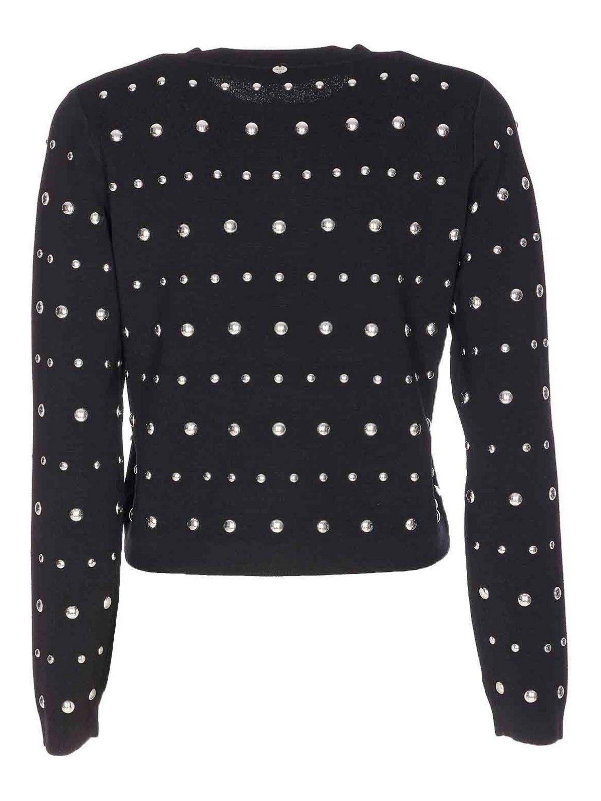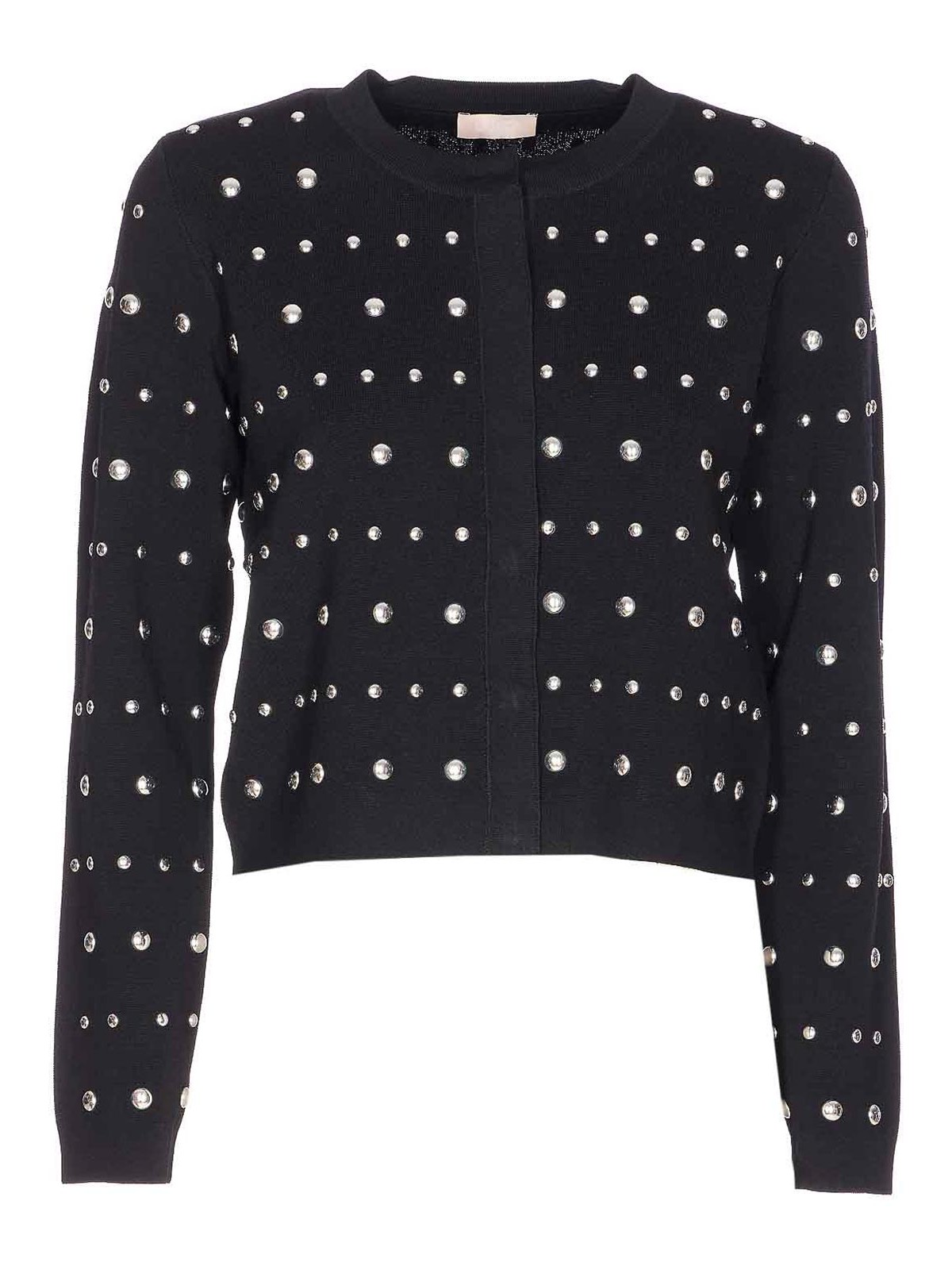 Liu Jo ブラックカーディガン、ボタン留め、クルーネック、ロングスリーブ、オールオーバーディテール