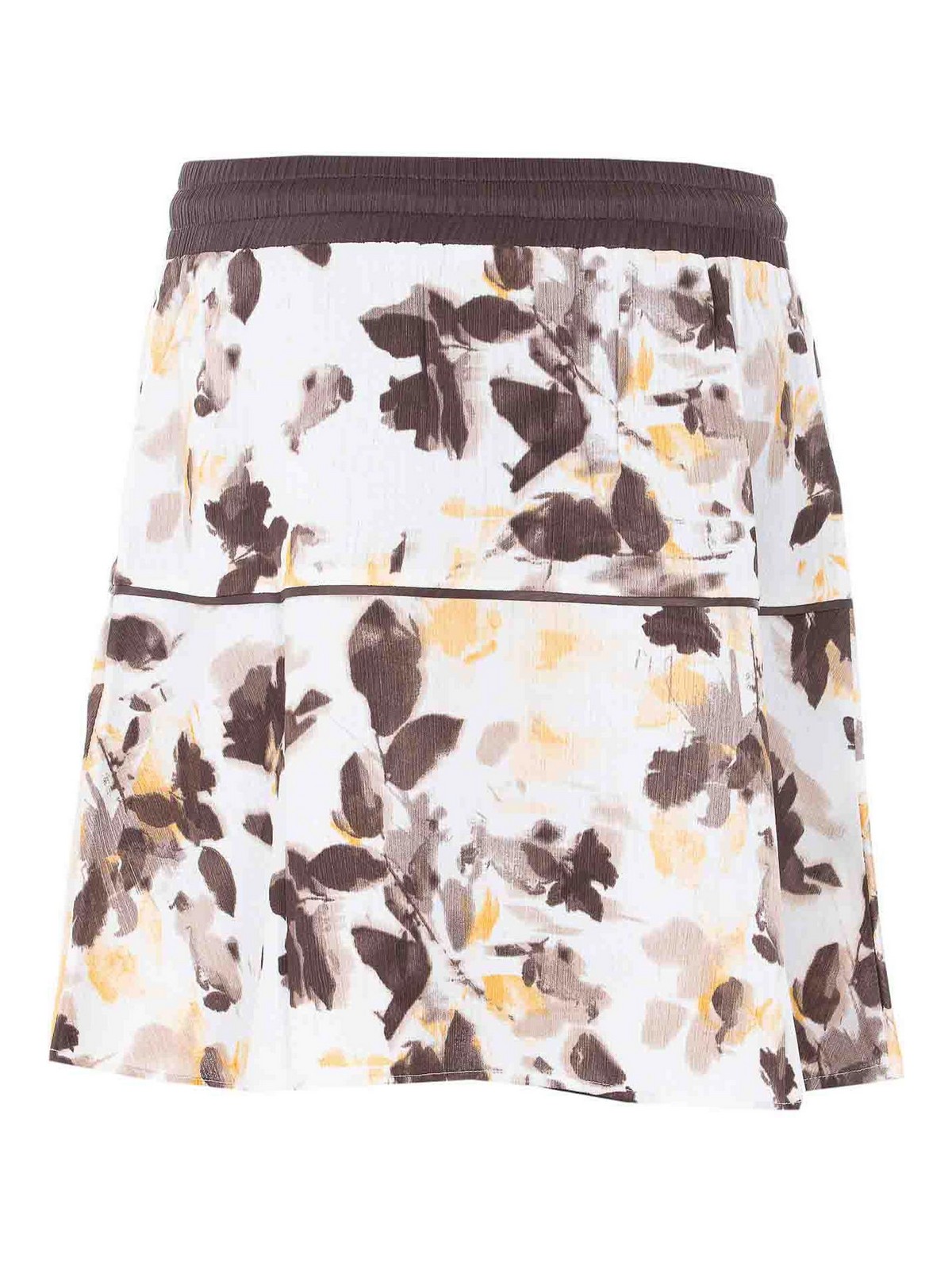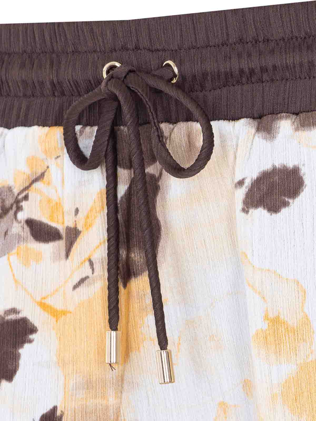 Liu Jo ブラウンシェードスカート、ミニモード、ドローストリングクロージャー、花柄、正面刺繍ロゴ