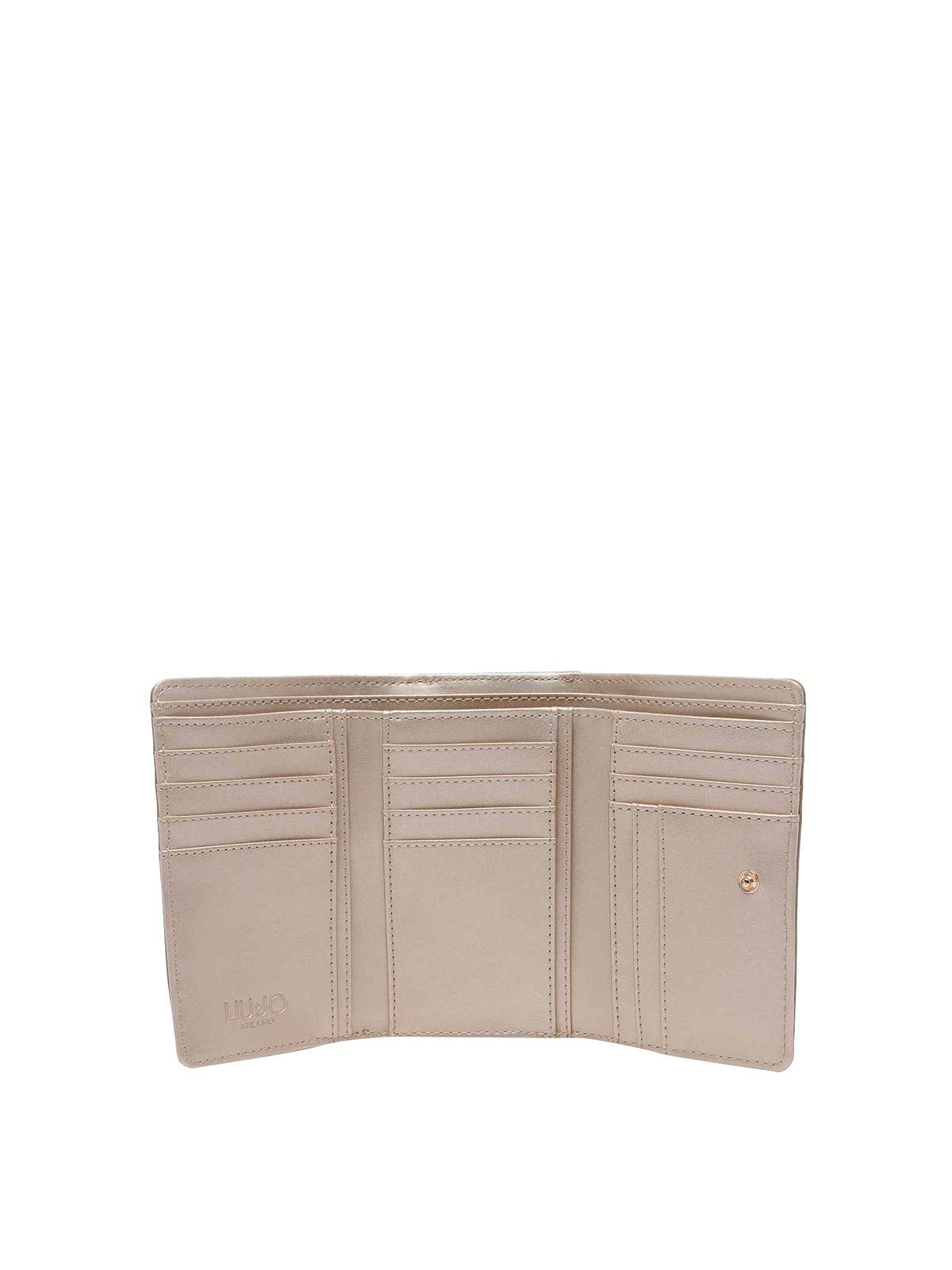 Liu Jo マッドロゴウォレット、クリップクロージャー、13 スロット、5 ポケット、2 ノートセクション、正面ロゴ