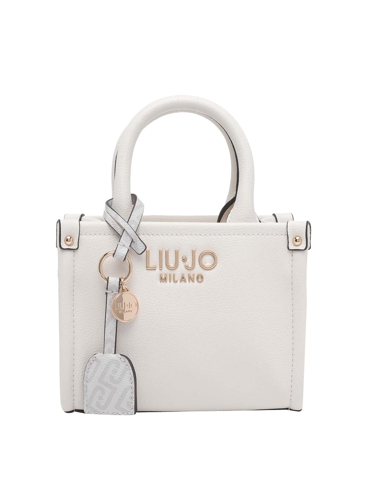 Liu Jo ホワイトロゴトートバッグ、ファスナー開閉、内側にオープンポケット、ハンドル2つ、調節可能で取り外し可能なストラップ、正面ロゴ
