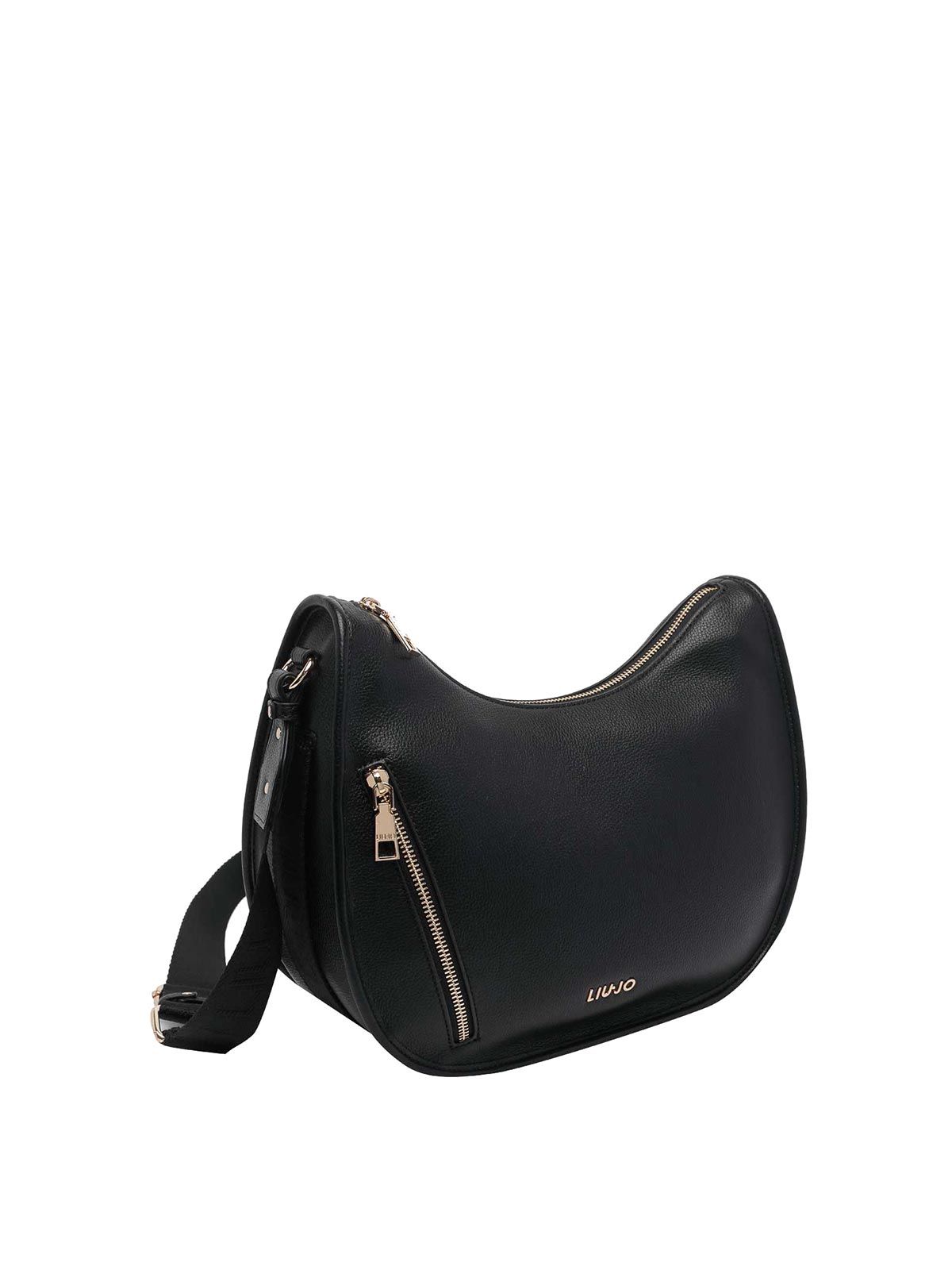Liu Jo ブラックロゴ入りホーボーバッグ、ファスナー開閉、ファスナー付き内ポケット、外ポケット2つ、調節可能ストラップ、正面ロゴ