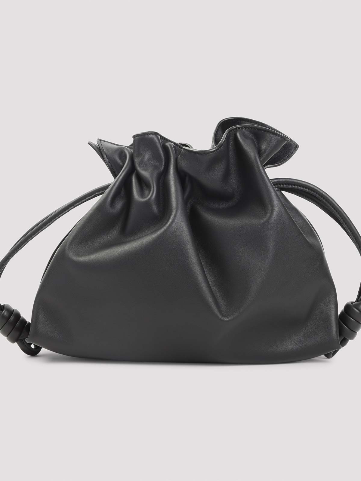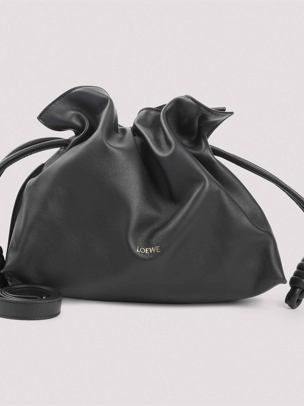 ロエベブラックフラメンコミュージッドクラッチピュアブラッククラッチハンドバッグトップアジャスタブルサイドトーンストラップ、トーンレタリングロゴ調節可能で取り外し可能なショルダーストラップ、メインコンパートメント1つ