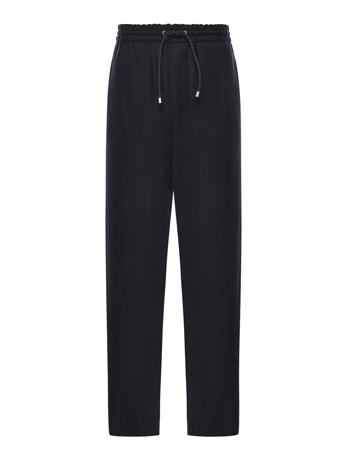 ウールフランネル製、ドローストリングウエスト、隠しファスナー、ミッドライズ、ストレートレッグ、イタリア製、写真のサイズはM、色:ネイビーブルー