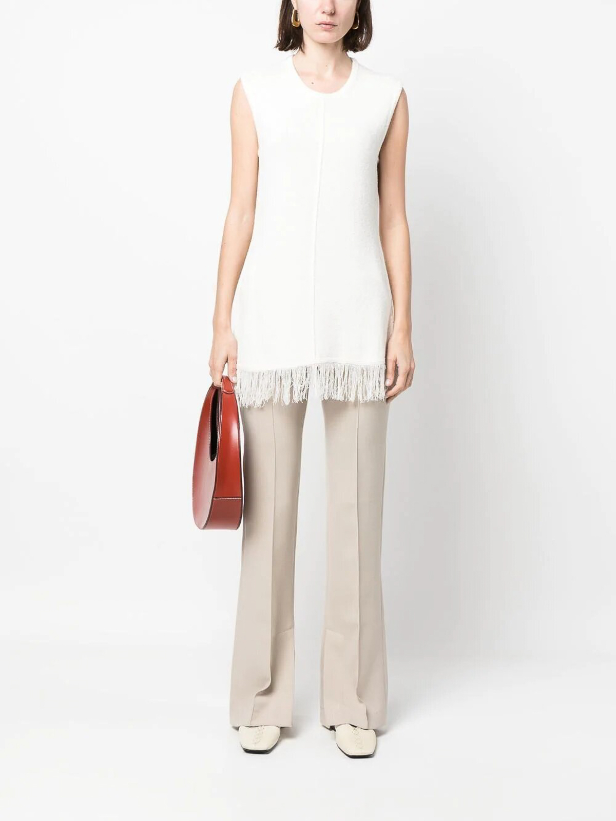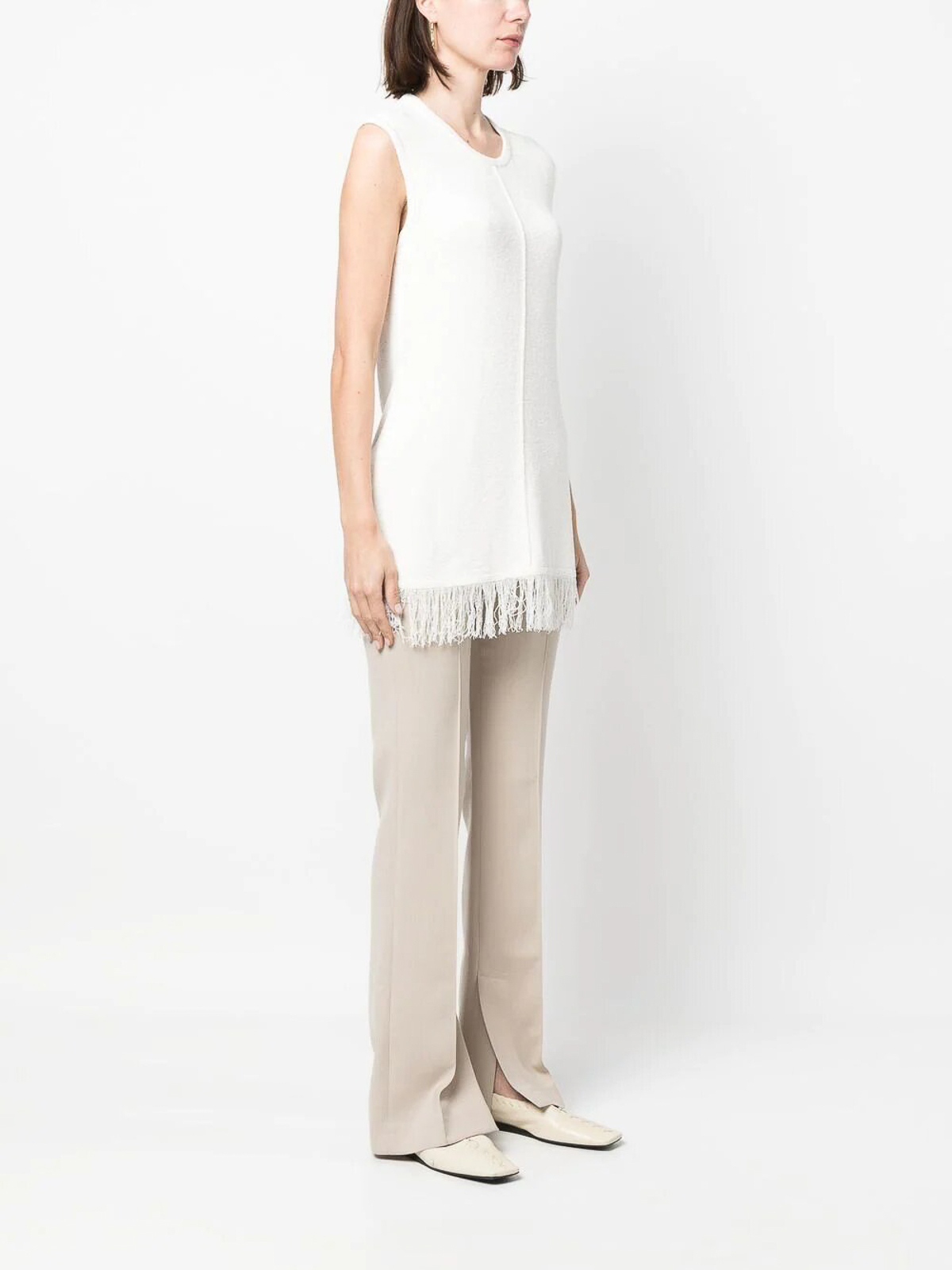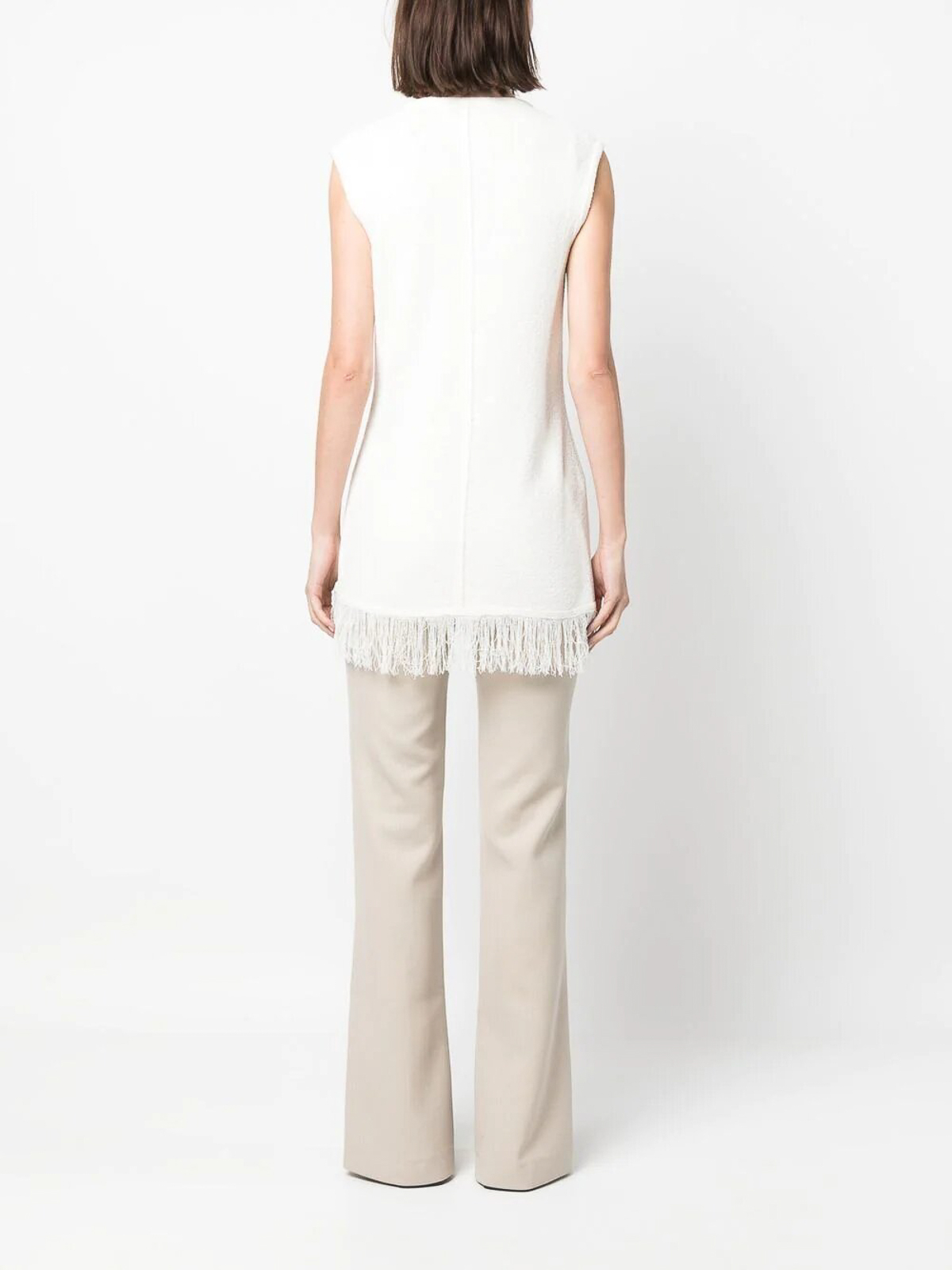 ノースリーブトップ、下部にフリンジ付き