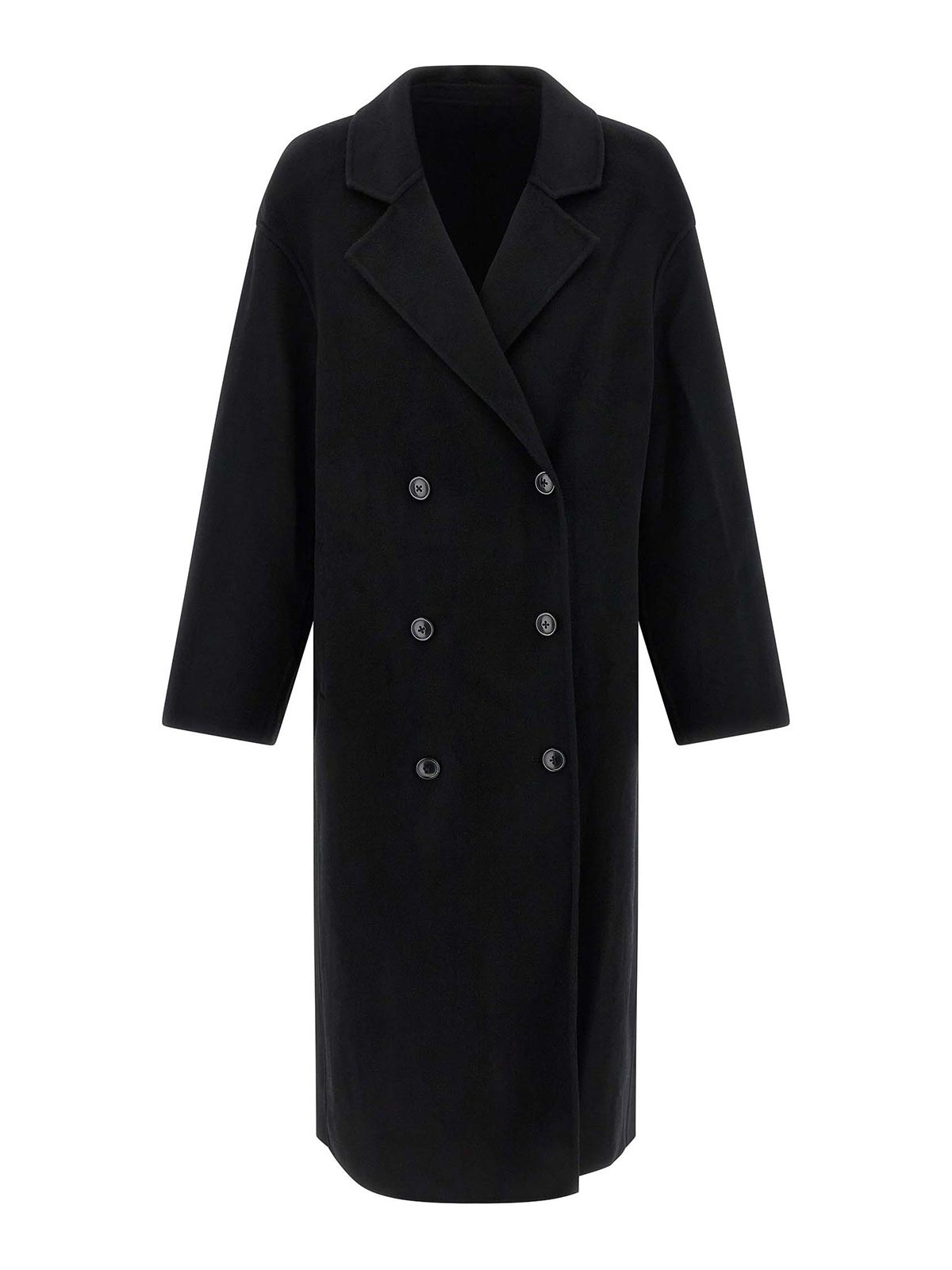 ボルネオのダブルブレストコートとドレープ付きボタンミラーラペルポケット付きロングスリーブドロップショルダーバックスプリット裏地なし