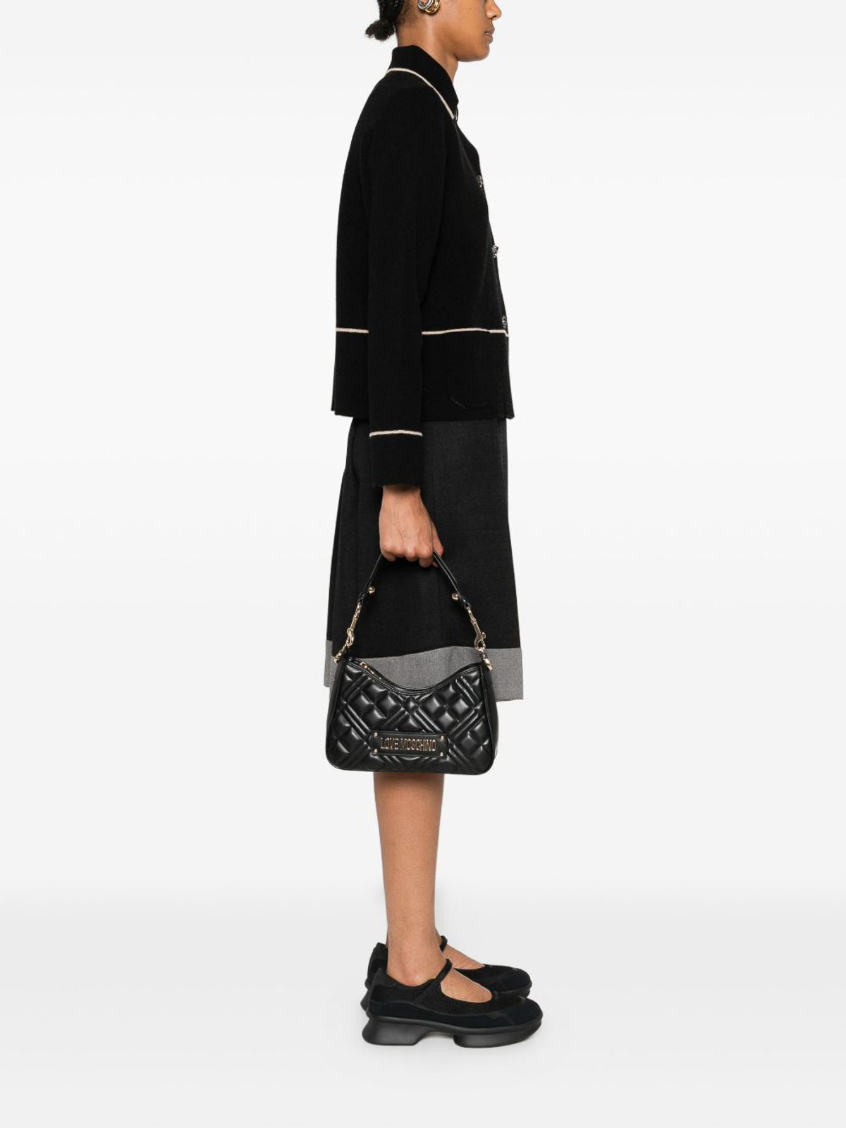 ブラックキルト柄、トーンロゴプレート、トップジッパー、取り外し可能なショルダーストラップ