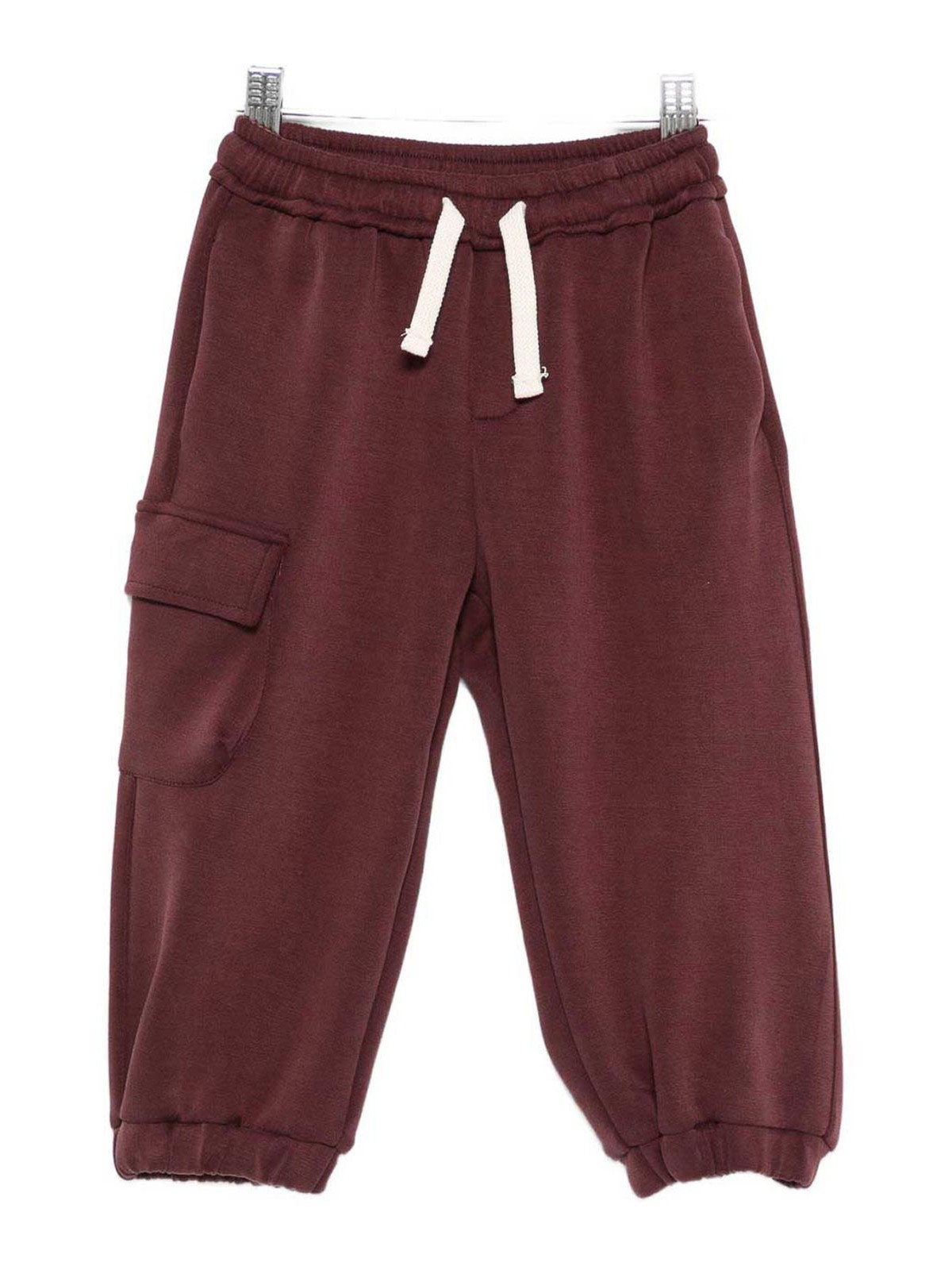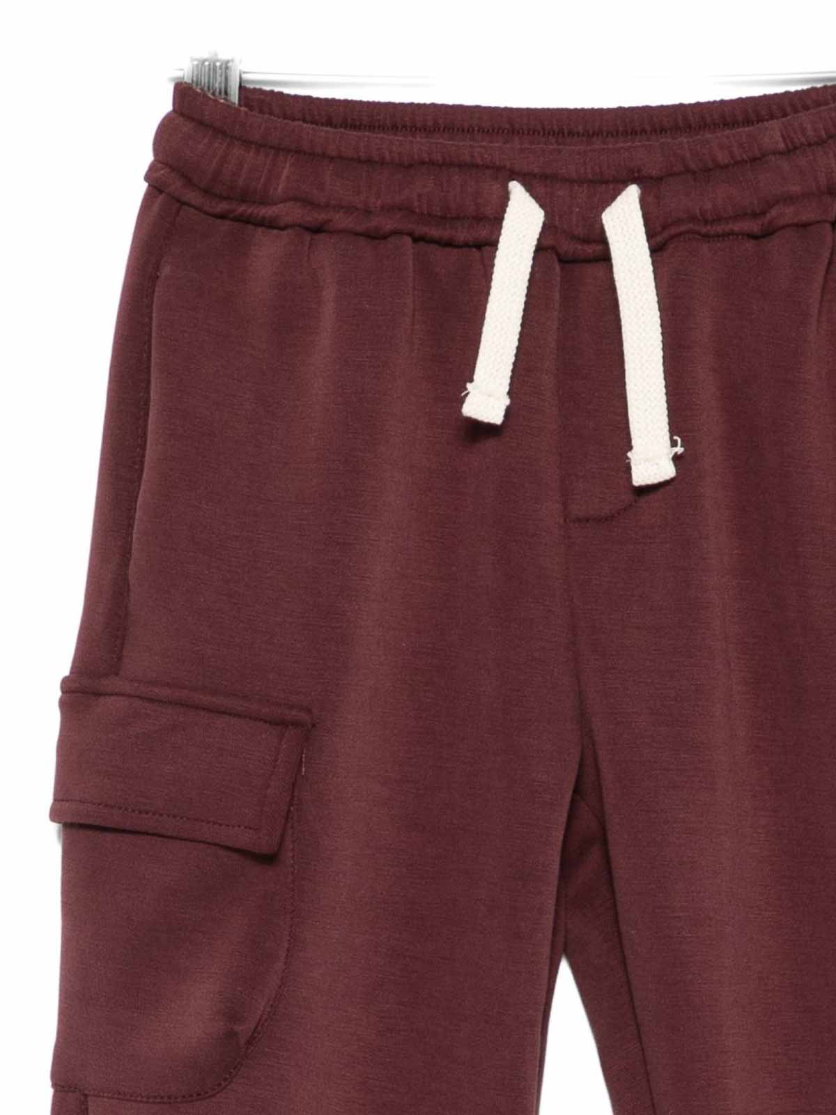 ウエストにドローストリングが付いたバーガンディポケット付きパンツ
